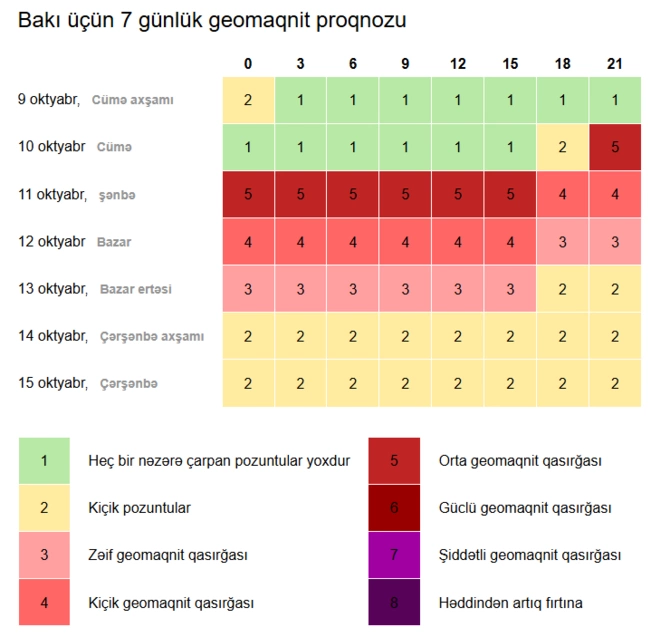 Lakin bütünlükdə maqnit qasırğasının təsiri 12 oktyabr saat 18:00-da qüvvədən düşəcək.
