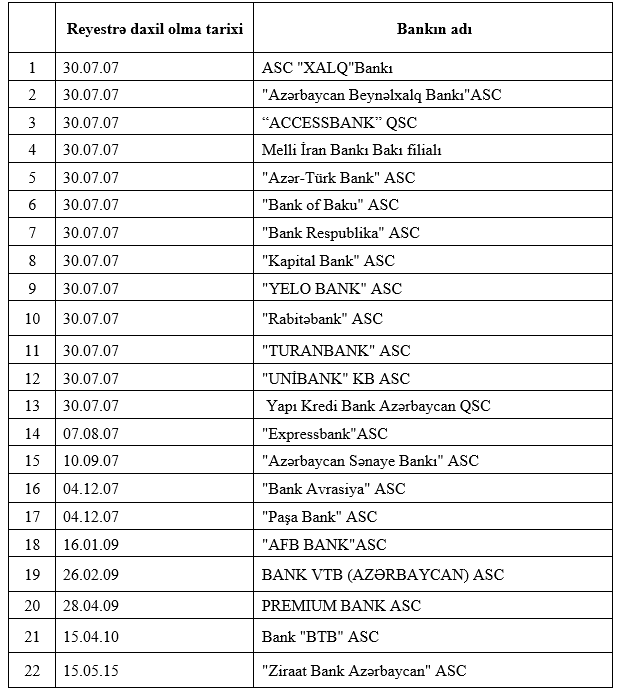 Əmanətlərin Sığortalanması Fonduna üzv bankların reyestri