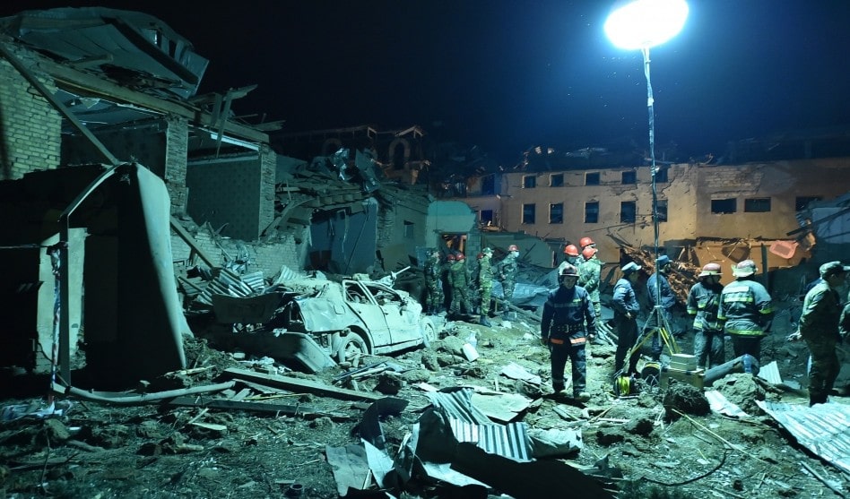 Ermənistan silahlı qüvvələri atəşkəs rejimini və beynəlxalq hüquq normalarını, o cümlədən silahlı münaqişələr zamanı mülki şəxslərin müdafiəsinə dair 12 avqust 1949-cu il tarixli Cenevrə Konvensiyasının tələblərini kobud şəkildə pozaraq, 2020-ci il oktyabr ayının 4-də, 5-də, 8-də, 11-də və 17-də cəbhədən uzaqda yerləşən Gəncə şəhərində yaşayış məntəqələrinə, hərbi hədəf olmayan mülki obyektlərə, həmçinin mülki əhaliyə “Smerç” və “Elbrus” tipli raketlərlə zərbələr endirib. Raket hücumları nəticəsində 26 mülki şəxs öldürülüb, 175 nəfər isə müxtəlif dərəcəli bədən xəsarətləri alıb. Şəhərdə mülki infrastruktur obyektlərinə, nəqliyyat vasitələrinə, yaşayış evlərinə və digər tikililərə külli miqdarda ziyan dəyib.