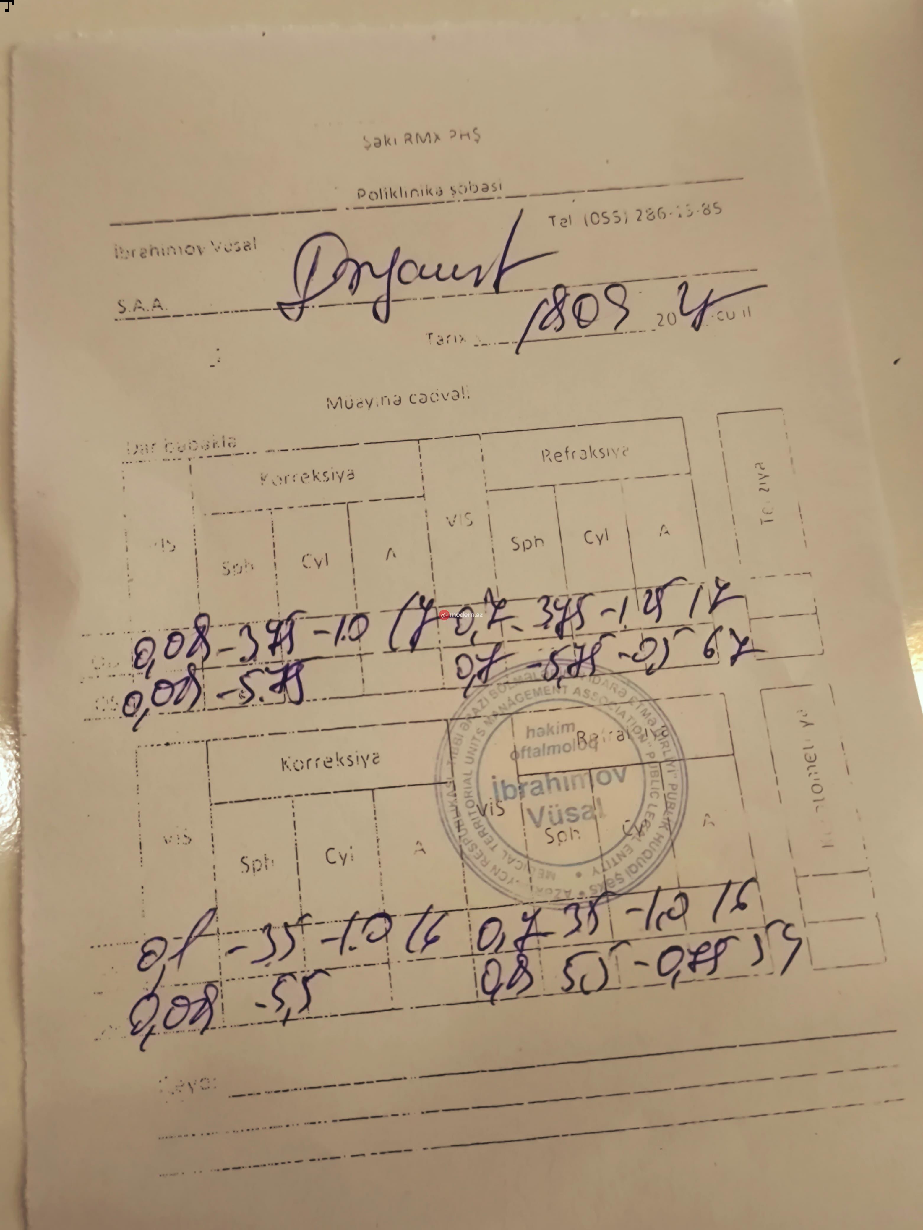 Z.Sirəfilova qeyd edir ki, oğlu eynəksiz demək olar ki, heç nə görə bilmir, uşaqlıqdan göz kökündə yaranmış problem səbəbindən kəskin ağrılar və zəifgörmə ilə üz-üzədir. Bu hal uşaqlıqdan qeydiyyatda olduğu Şəki Rayon Mərkəzi Xəstəxanasında, eləcə də Bakı şəhərində fəaliyyət göstərən dövlət və özəl tibb müəssisələrində keçirilmiş tibbi müayinələr və komissiyalar tərəfindən rəsmi şəkildə təsdiqlənib.