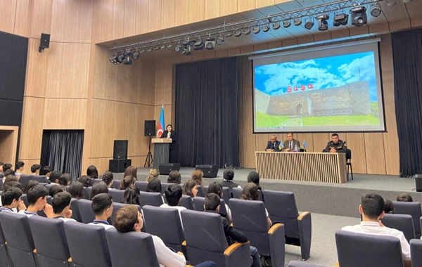 Fövqəladə Hallar Nazirliyinin (FHN) Qarabağ Regional Mərkəzi tərəfindən Şuşa şəhər 1 nömrəli tam orta məktəbində "Konstitusiya və Suverenlik İli"nə həsr olunan "Heydər Əliyev və milli dövlətçilik təfəkkürü" mövzusunda tədbir keçirilib.