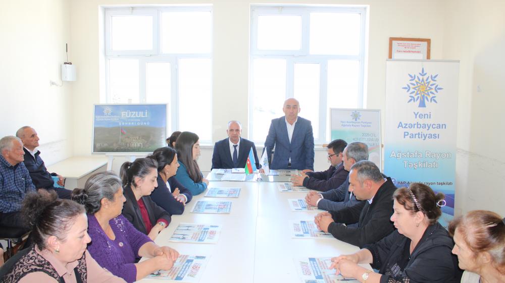 14 oktyabr 2025-ci il tarixində Yeni Azərbaycan Partiyası Ağstafa rayon təşkilatı tərəfindən “Köhnəqışlaq kənd”, “Tatlı kənd” və “Göycəli kənd” Ərazi Partiya Təşkilatlarından olan partiya fəallarının iştirakı ilə 17 oktyabr “Füzuli şəhəri günü”nə həsr olunmuş tədbir keçirilib.
