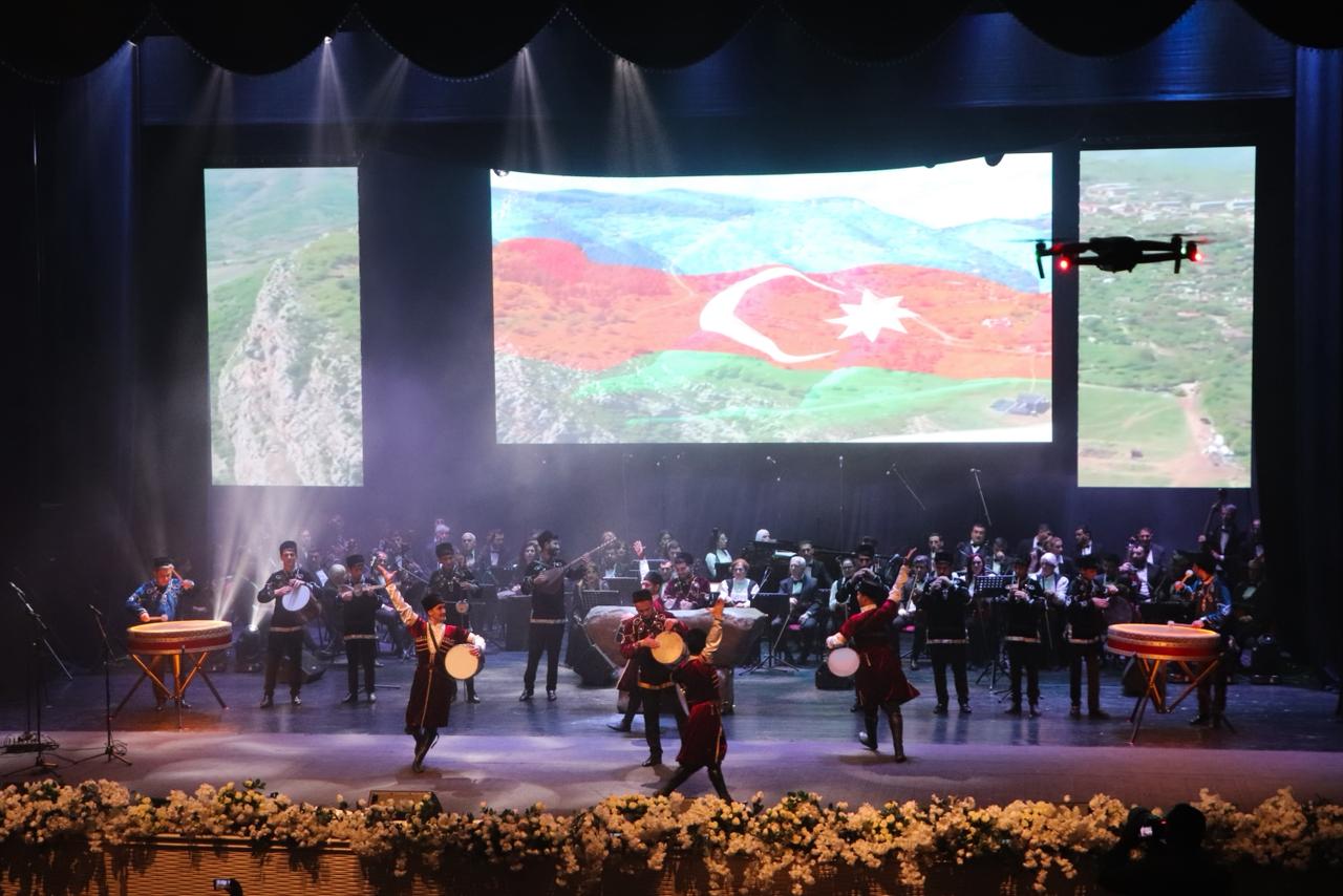 Konsertin aparıcıları Zəfər salnaməsindən, qəhrəmanlıq tariximizdən danışıb, ifaçılar bir-birindən maraqlı bədii kompozisiyalarla çıxış ediblər.