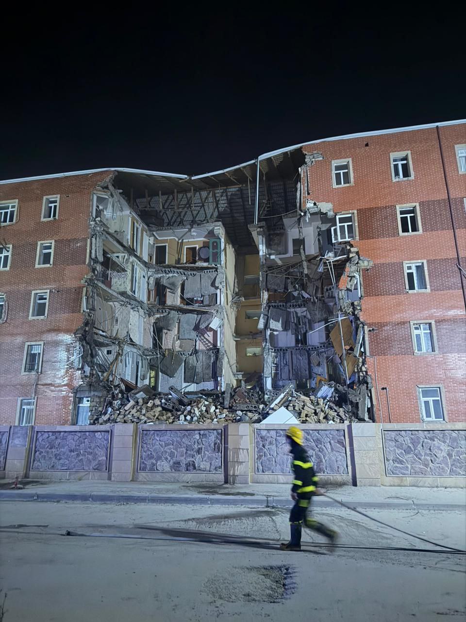 Bir neçə gün öncə 60 mənzilli binanın 5-ci girişində birinci mərtəbə uçmuşdu. Həmin gündən əhali təxliyə olunmuşdu, binada yaşayış yox idi.