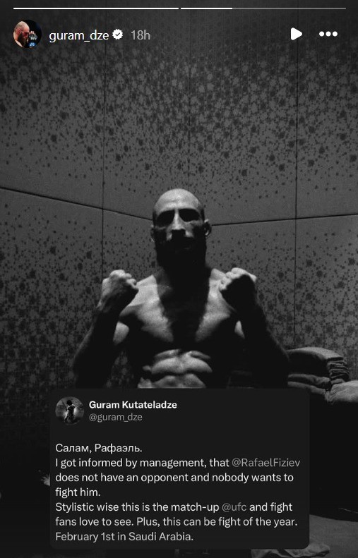 Gürcüstanlı MMA döyüşçüsü Quram Kutateladzi uzun müddətdən sonra oktaqona qayıdacaq Rafael Fiziyevə meydan oxuyub.