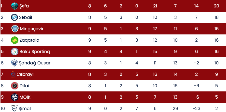 Qeyd edək ki, turun iki oyunu dünən baş tutub. “Mingəçevir” evdə “Baku Sportinq”ə uduzub (1:2), “Zaqatala” səfərdə “Şimal”ı darmadağın edib (4:0).