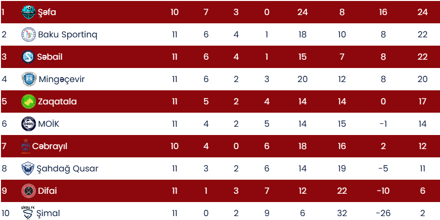 Qeyd edək ki, turun əvvəlki oyunlarında "Baku Sportinq" "Şimal"ı 1:0, MOİK "Zaqatala"nı 3:1 hesabı ilə yenib, “Difai” – “Mingəçevir” (1:1) və “Şahdağ Qusar” – “Səbail” (2:2) qarşılaşmalarında isə qalib müəyyənləşməyib.
