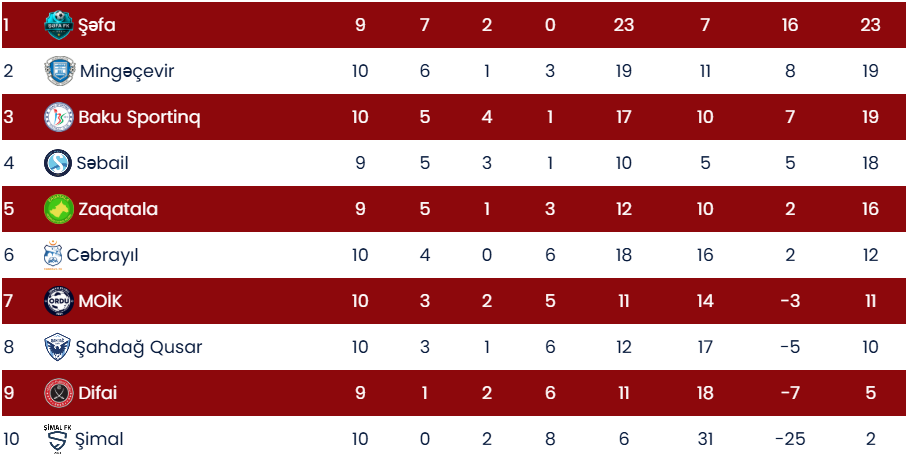 Qeyd edək ki, ötən gün baş tutan görüşlərdə “Mingəçevir” “Cəbrayıl”ı (2:0), “Baku Sportinq” “Şahdağ Qusar”ı (2:1), MOİK isə “Şimal”ı (2:0) üstələyib.