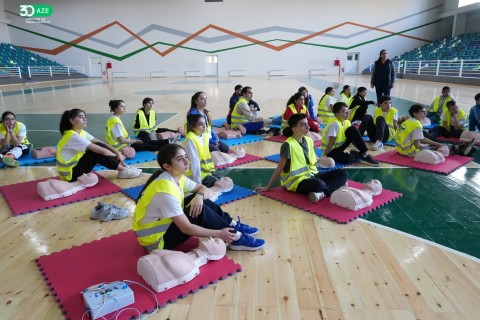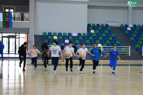 İdman.biz xəbər verir ki, əvvəlcə idmançılar “Gimnastika hamı üçün” məşğələsində musiqi sədaları altında isinmə hərəkətlərini yerinə yetiriblər.