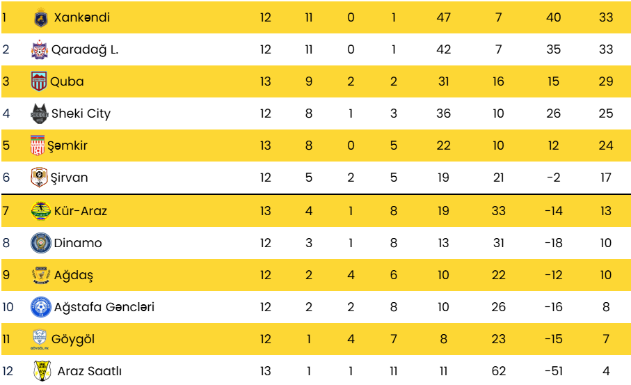 Qeyd edək ki, tur çərçivəsində ötən gün "Kür-Araz" səfərdə "Araz Saatlı"nı 4:1, "Quba" isə "Şəmkir"i 1:0 hesabı ilə yenib. "Qaradağ Lökbatan" - "Şəki Siti" qarşılaşması isə qonaqların oyuna gəlməməsi səbəbindən baş tutmayıb.
