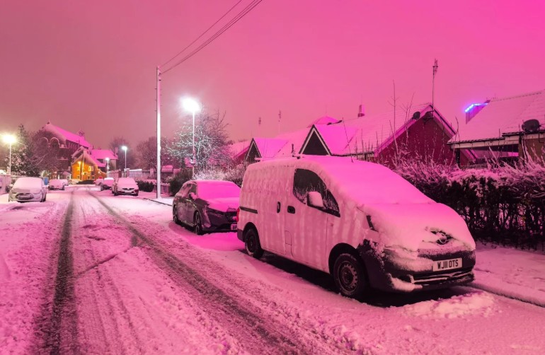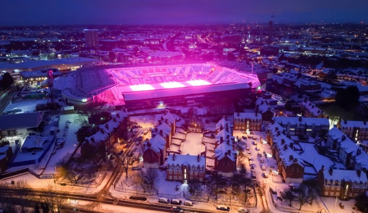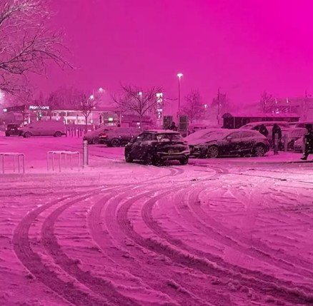 “Birmingham City” futbol stadionunda ot örtüyünü yaxşılaşdırmaq üçün quraşdırılmış böyümə LED lampaları var. Bu lampaların işığı qarla örtülü buludlara əks olunduqda səma çəhrayı-bənövşəyi görünüb.