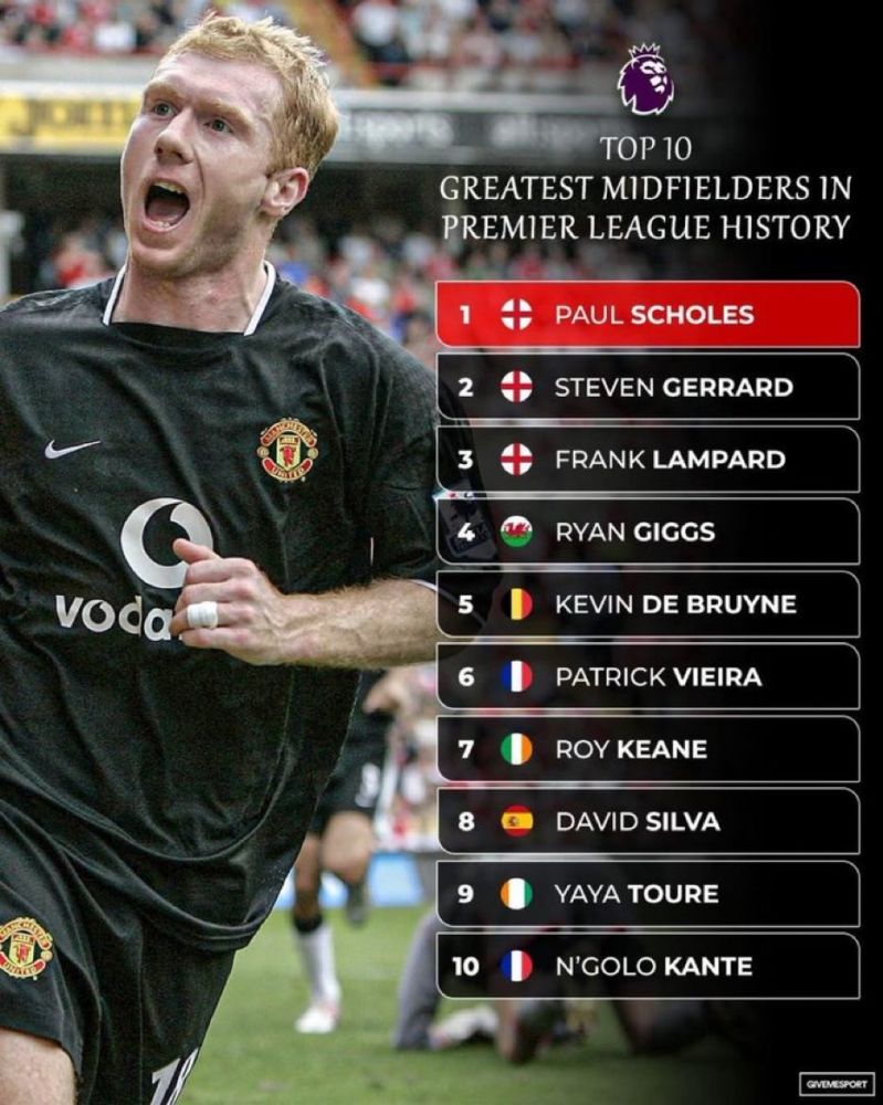 "Givemesport" nəşri Premyer Liqa tarixinin ən yaxşı yarımmüdafiəçilərinin siyahısını açıqlayıb. Reytinqə İngiltərənin və “Mançester Yunayted”in əfsanəvi futbolçusu Pol Skoulz başçılıq edir.