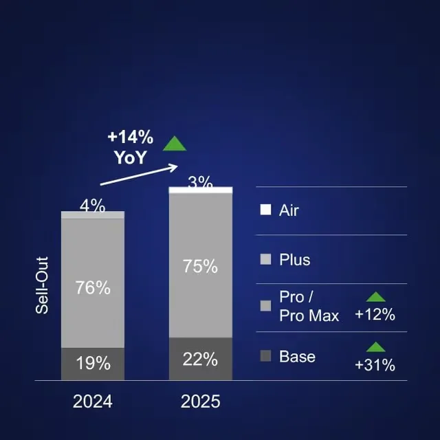 “ABŞ-da operatorlar, 24 və ya 36 aylıq maliyyələşdirmə müqavilələri vasitəsilə yüksək aylıq xidmət gəliri əldə etmək üçün cihaz subsidiyalarını artırıblar. Bu Pro Max modellərini daha geniş auditoriyaya əlçatan edib, premiumlaşma meylini gücləndirib”.