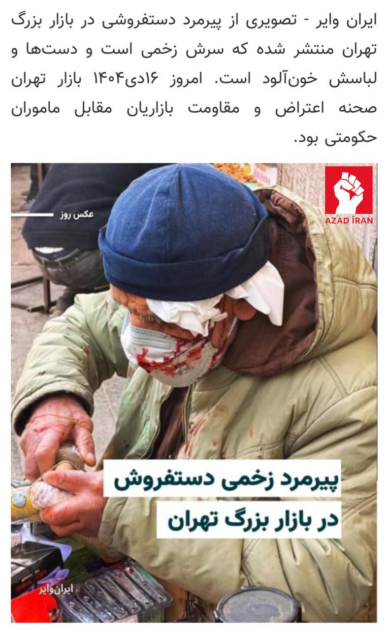 Paylaşılan məlumatlara görə, Tehran Bazarı sahibkarların repressiv qüvvələrə qarşı etiraz və müqaviməti zamanı gərgin hadisələrə səhnə olub. Şahidlərin bildirdiyinə əsasən, etirazlar zamanı qarşıdurmalar yaşanıb və bəzi şəxslər xəsarət alıb.