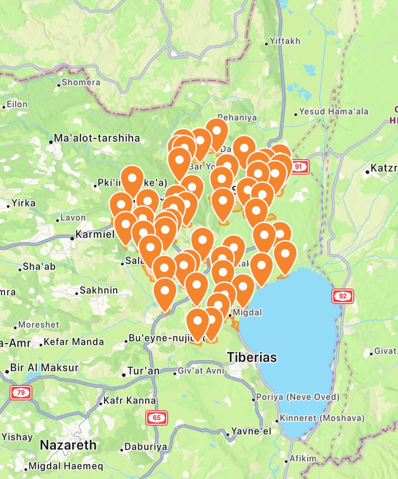 Paylaşıma əlavə edilmiş xəbərdarlıq xəritəsi Nazaret, Tiberias və Tiberias gölünün şimalındakı ərazilərdə təhlükə olduğunu göstərir.