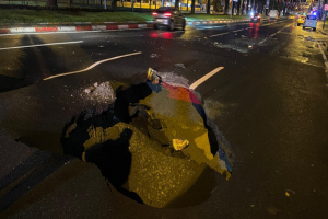 İstanbulda leysandan sonra yol çökdü FOTOLAR