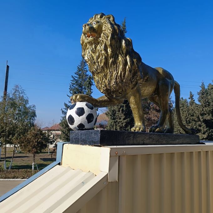 Aşağıdakı şəkildə gördüyünüz şir Yevlax rayon stadionunun qarşısında qoyulub. Futbol oynayanda şirə dönmək mənasını verir böyük ehtimalla.