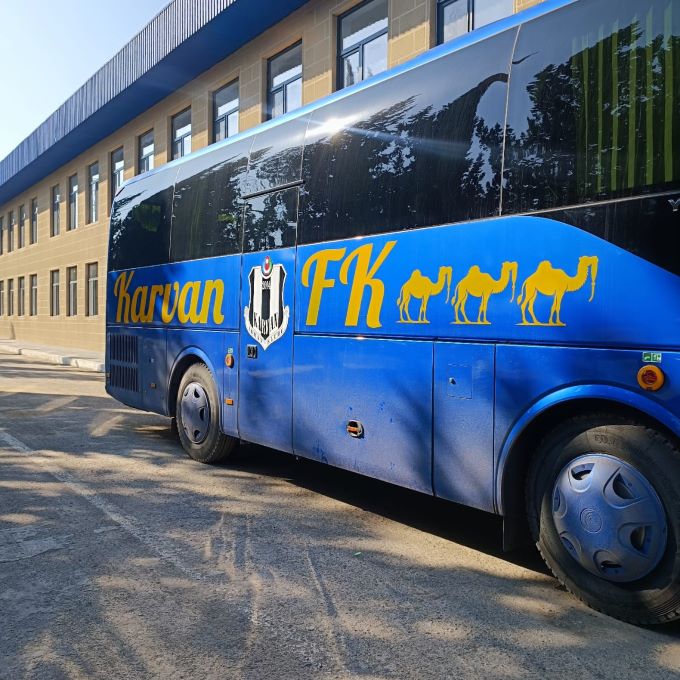 Digər şəkildəki avtobus isə rayonun “Karvan-Yevlax” adlı Futbol klubunun (FK) avtobusudu. Klubun loqosunda dəvə şəkli var, çünki, klubun rəmzi nişanı məhz dəvədi.