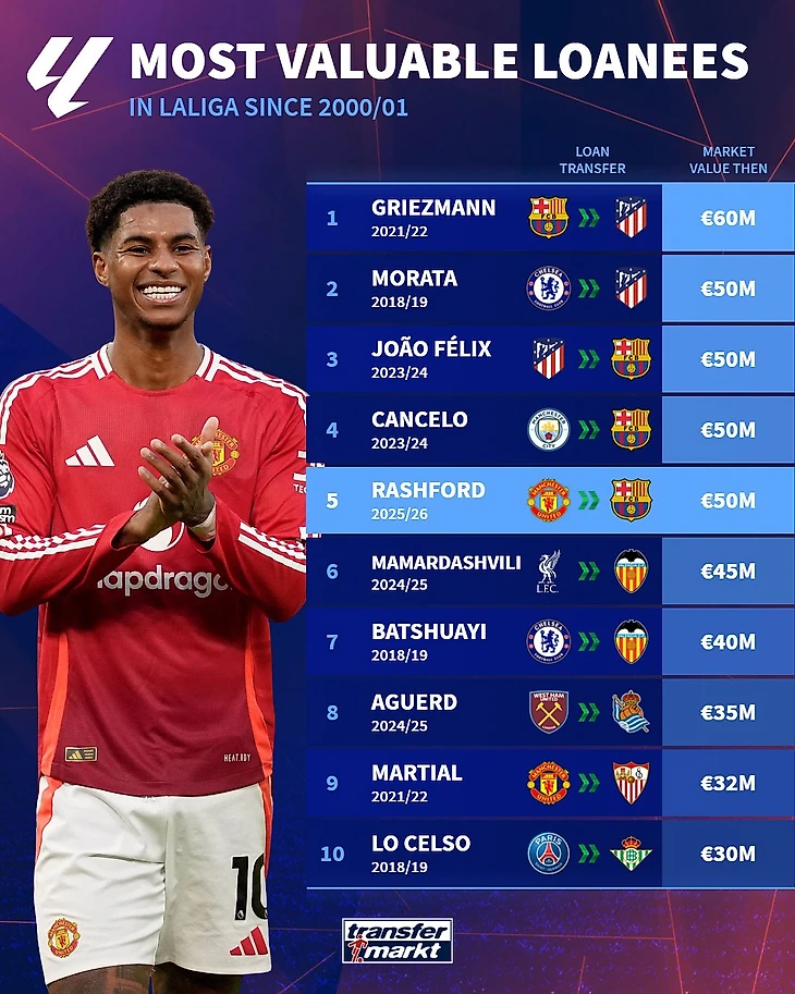 La Liqada icarə transfer dəyərinə görə ən yaxşı 10 oyunçu: Reşford beşincidir
