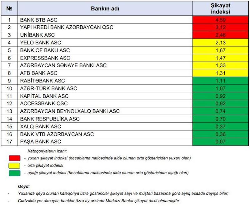 Şikayət olunan bankların siyahısında “Yapı Kredi Bank Azərbaycan” QSC ikinci, “Unibank” ASC isə üçüncü olub.