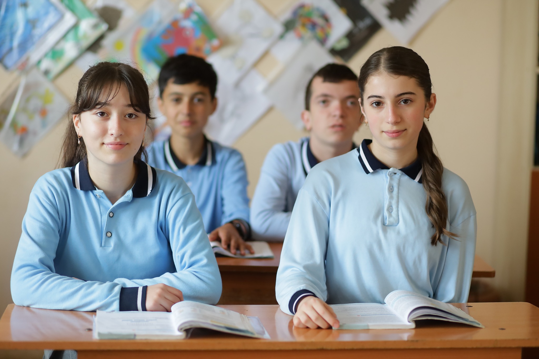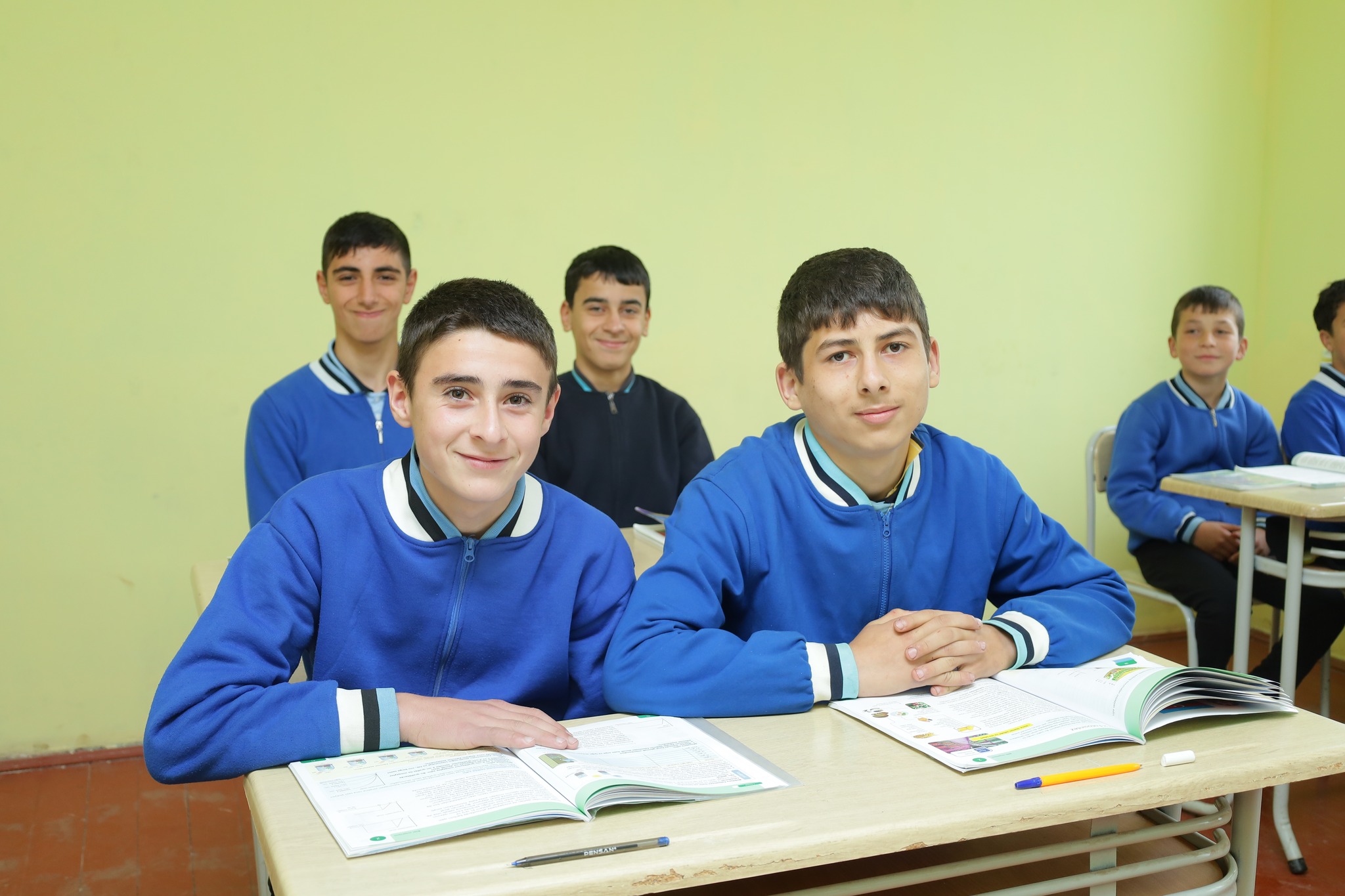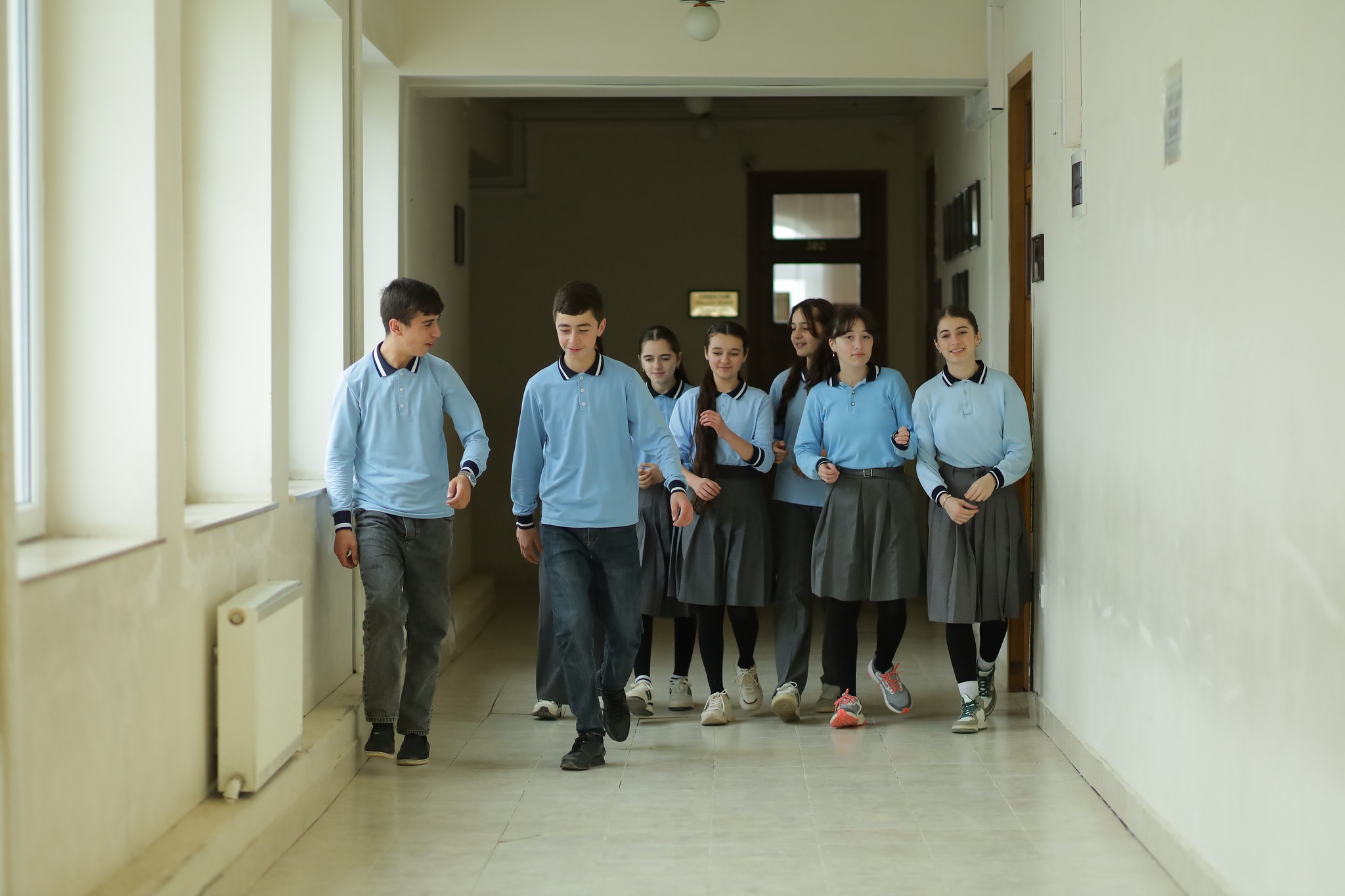 Fotolarda şagirdlərin səhər saatlarında məktəbə gəlişi, sinif otaqlarında dərs prosesində iştirakı, eləcə də məktəbin dəhlizində səmimi anları əks olunub.