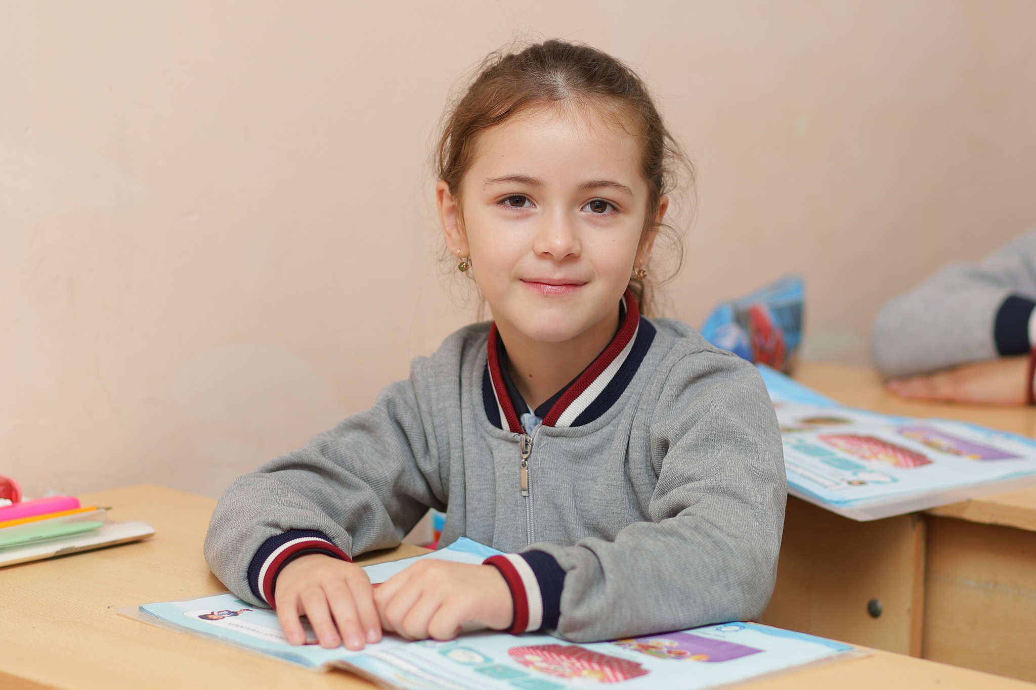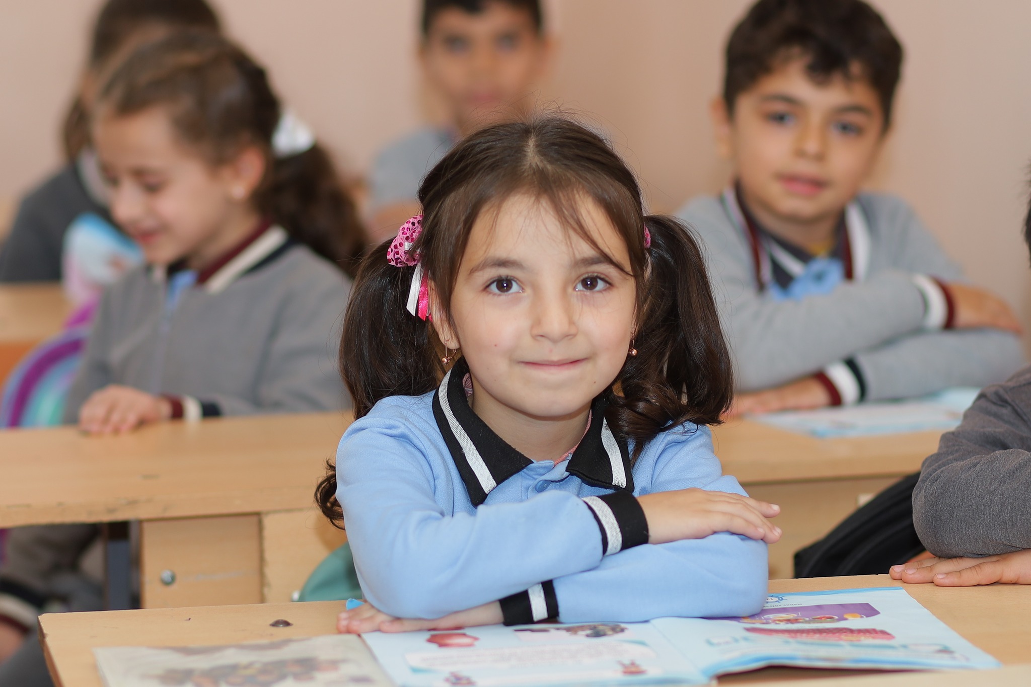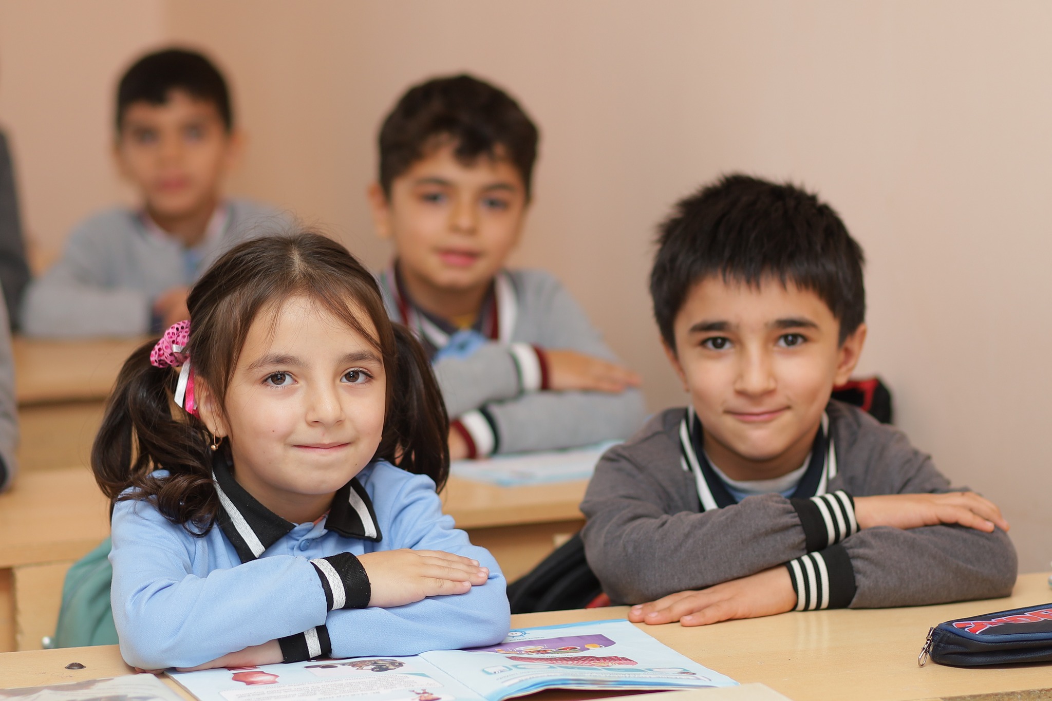 Fotolarda şagirdlərin səhər saatlarında məktəbə gəlişi, sinif otaqlarında dərs prosesində iştirakı, eləcə də məktəbin dəhlizində səmimi anları əks olunub.