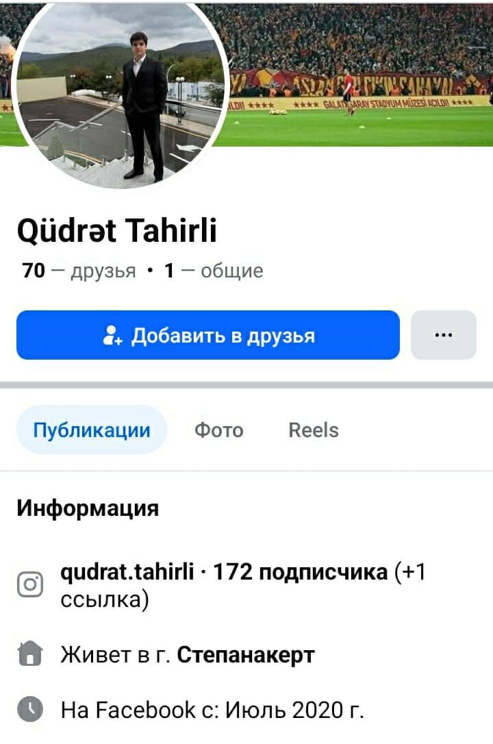 Siyəzən rayon Komunal Müəssisələri Kombinatının müvəqqəti müdir əvəzi Rasim Tahirlinin oğlu Qüdrət Tahirli özünün Facebook hesabında paylaşım edib. Tribunainfo.az xəbər verir ki, o, hazırda olduğu Xankəndi şəhərini “Stepanakert” kimi qeyd edib.