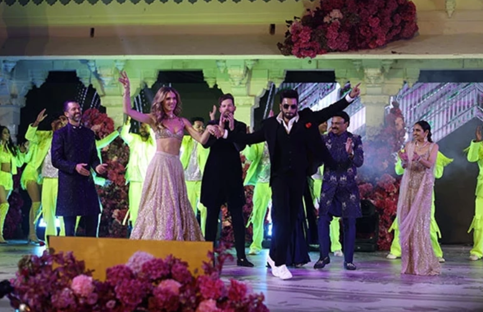 Sosial media platforması X-da paylaşılan videoda məşhur müğənninin təsirli çıxışını səhnədə ona qoşulan gəlin Netra Mantena və bəy Vamsi Qadiracuya badə qaldıraraq yekunlaşdırdığı görünür.