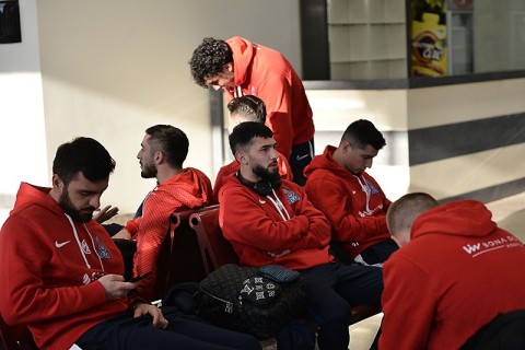 UEFA Millətlər Liqası çərçivəsində İsveç yığması ilə qarşılaşacaq Azərbaycan milli komandası oyunun keçiriləcəyi Solna şəhərinə yola düşüb.