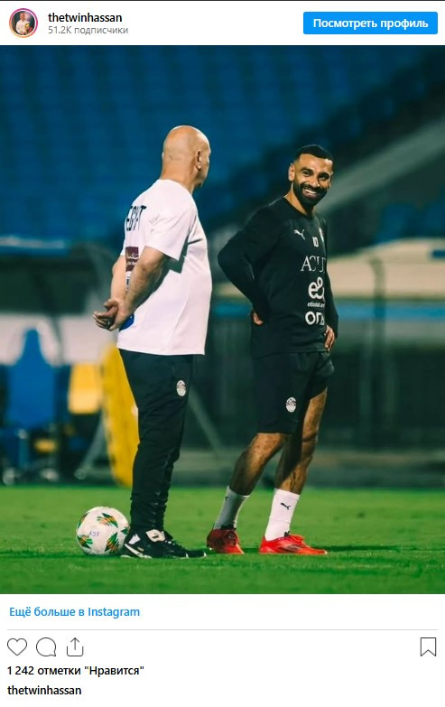 Milli komandanın baş məşqçisi Hossam Hassan da “Instagram” səhifəsində Salahla birgə fotosunu paylaşaraq “Həmişə əzmkarlıq və güc simvolu” sözlərini qeyd edib.