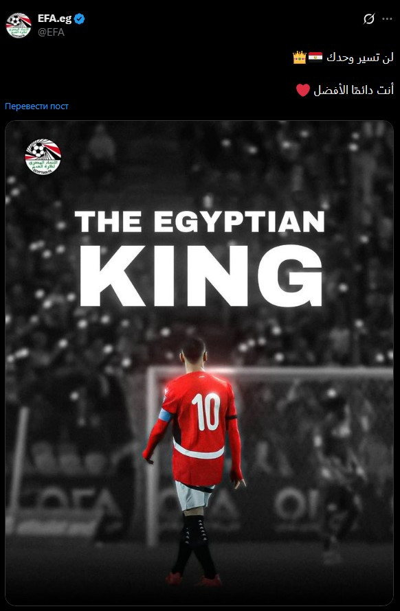Misir Futbol Assosiasiyası rəsmi “X” hesabında Salahın fotosu ilə birlikdə “Heç zaman tək deyilsən. Sən həmişə ən yaxşısan” məzmunlu paylaşım edib.