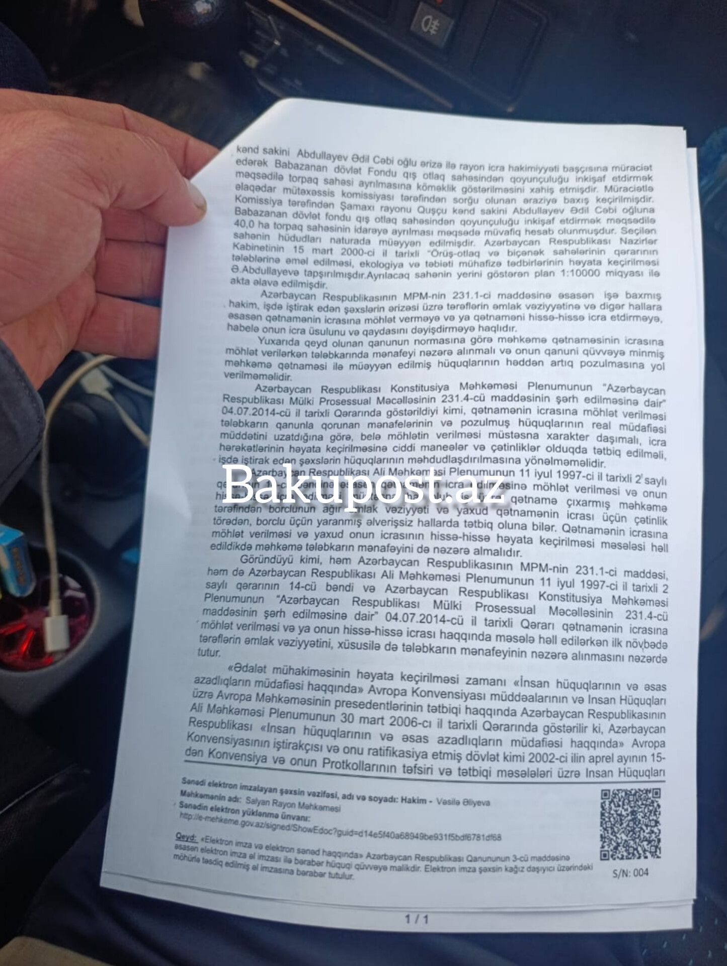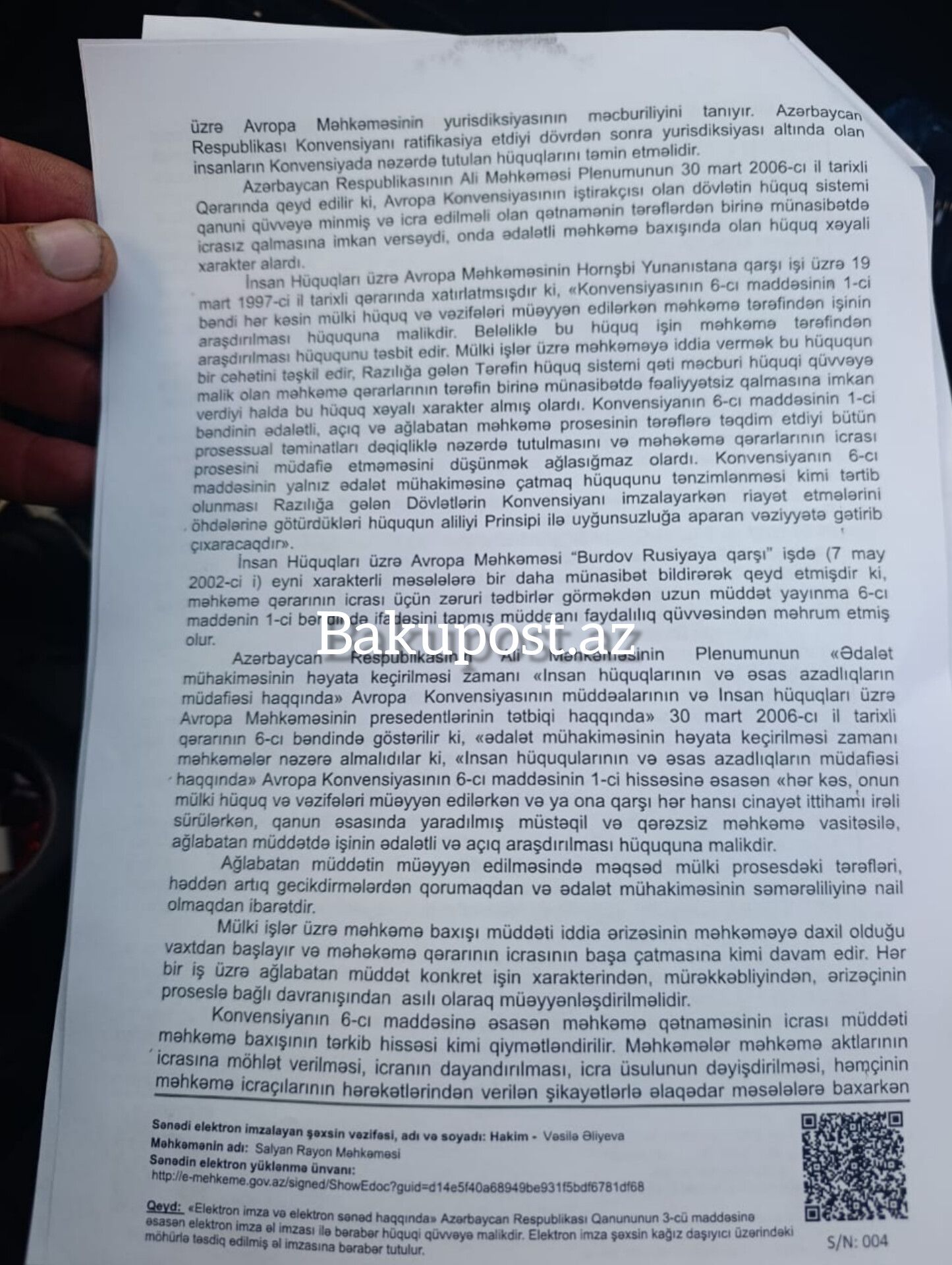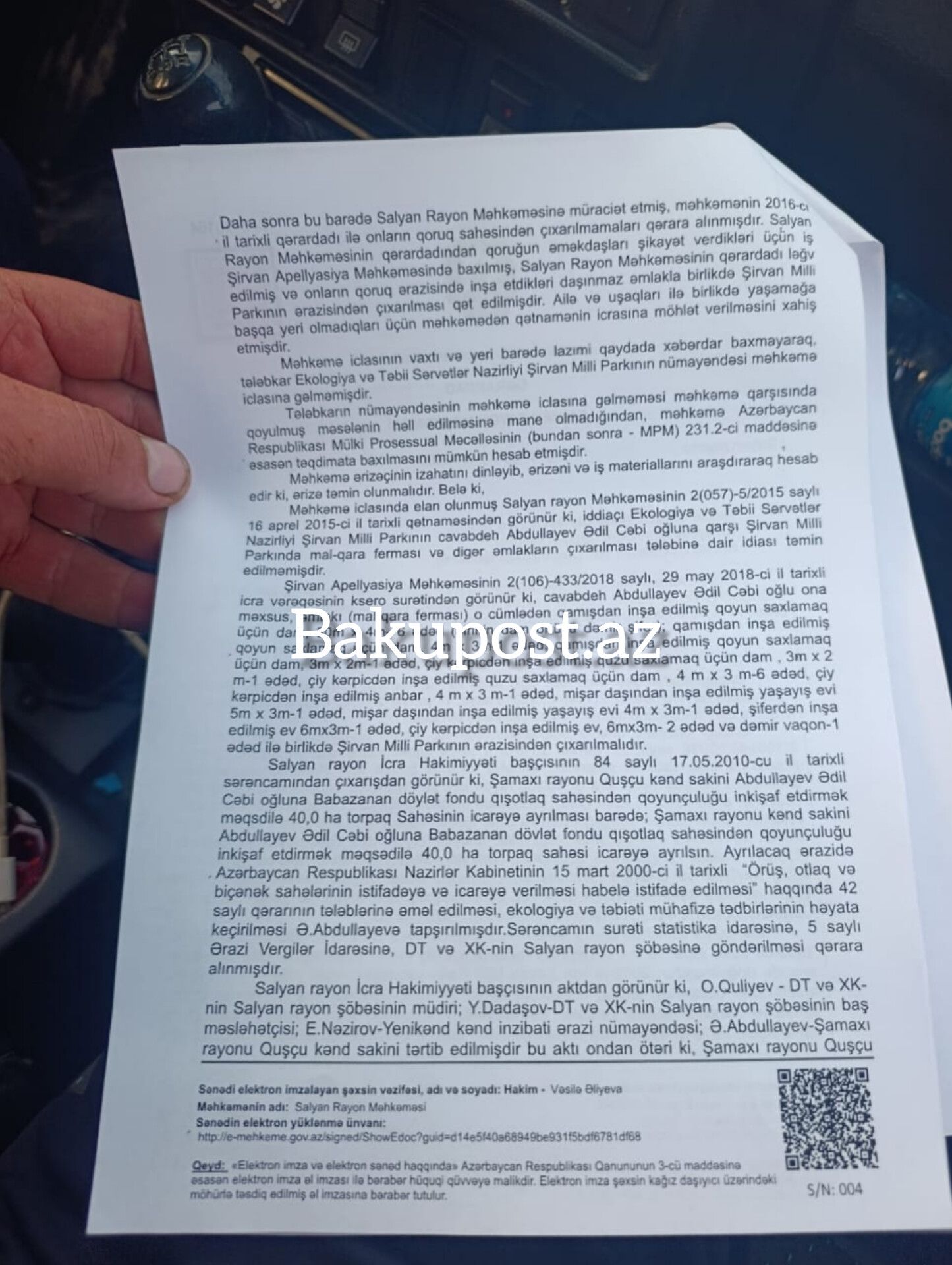 Qeyd etdiyimiz kimi, Salyan Rayon Məhkəməsi 10 dekabr 2025-ci il tarixli qərarla Şirvan Apellyasiya Məhkəməsinin qətnaməsinin icrasına 6 ay möhlət verib. Qərarda açıq şəkildə göstərilir ki, qış mövsümündə dərhal icra ailənin hüquqlarını poza bilər.