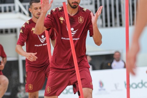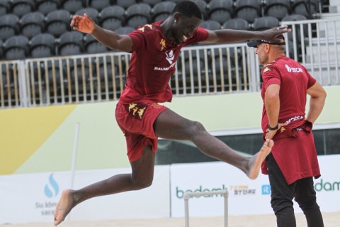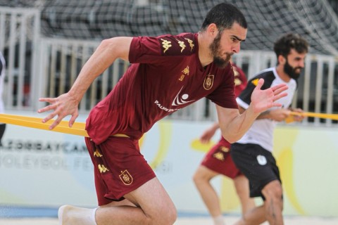 "Ağ-qaralar" çimərlik futbolu və digər idman növləri üçün nəzərdə tutulan meydançada qum üzərində topla və topsuz çalışıb, həmçinin futvolley oynayıblar.