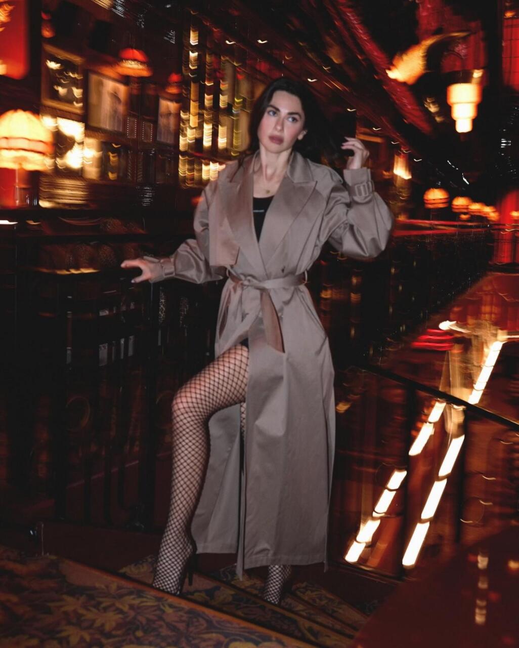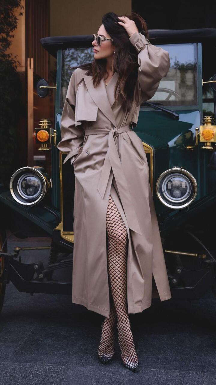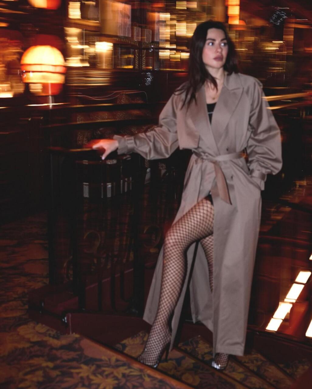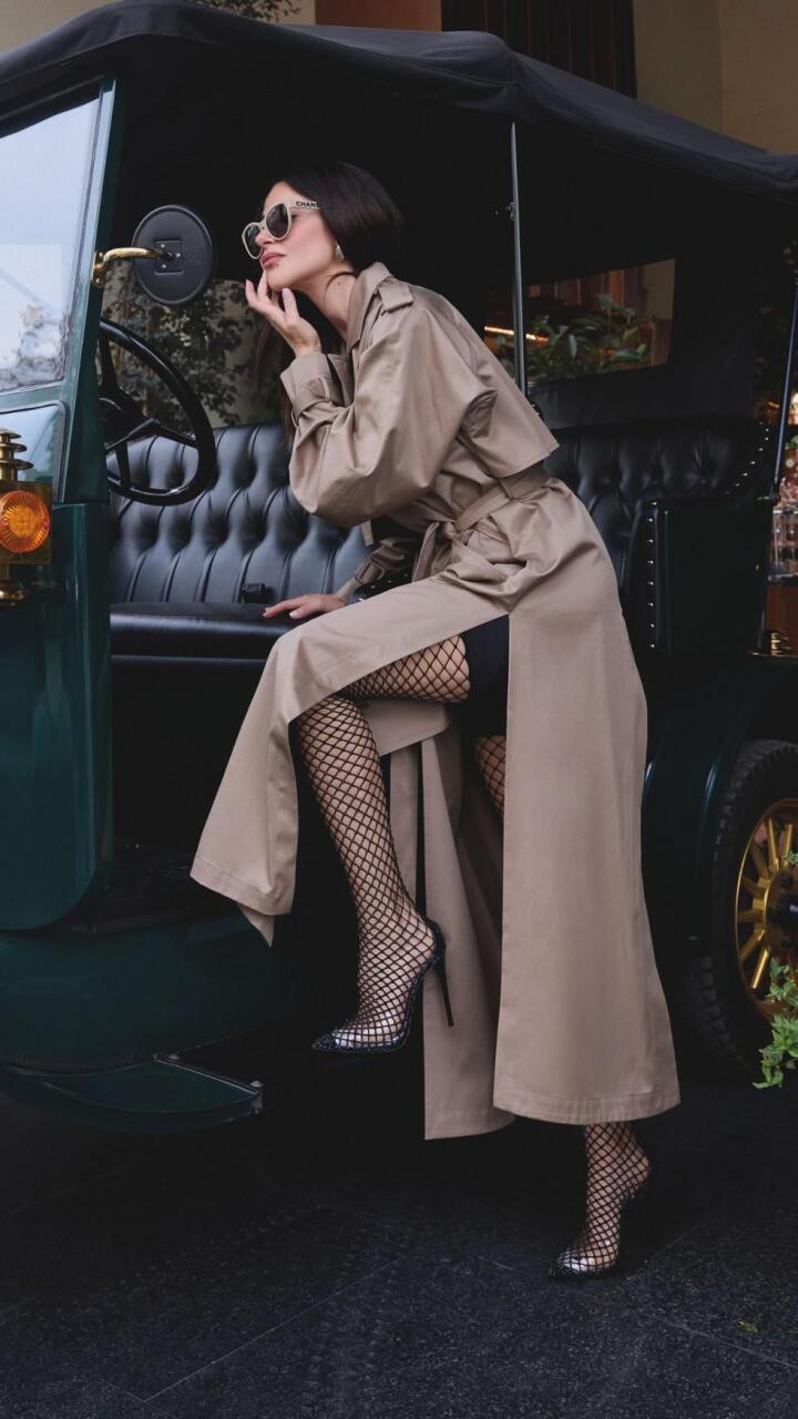Milli.Az xəbər verir ki, aktrisa yeni şəkillərini sosial media hesabında yayımlayıb. Nəsrin uzun plaşdan istifadə etsə də önünü açaraq qara corablarını nümayiş etdirib.