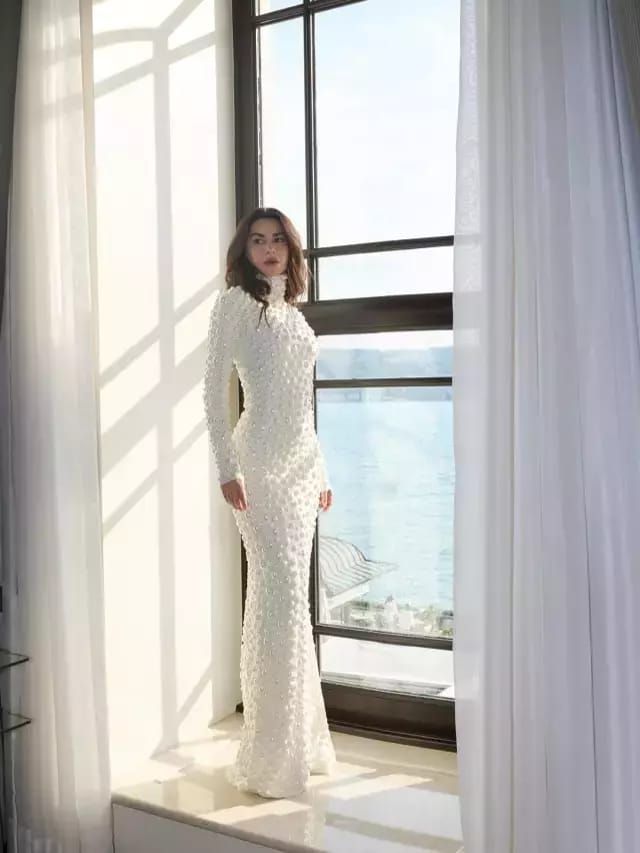 Bakupost.az Lent.az-a istinadla xəbər verir ki, aktrisa gecəyə tamamilə qapalı, boğazlı və yerə qədər uzanan bəyaz libasla qatılıb. Vücudu saran bu zərif geyim onun görünüşünə həm sadəlik, həm də incəlik qatıb.