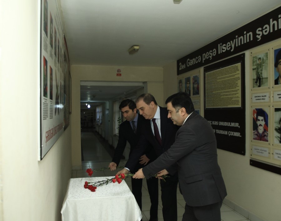 Əvvəlcə rəsmilər Mərkəzin şəhid məzunlarının əziz xatirəsinə həsr olunmuş lövhəni ziyarət edib, önünə tər çiçəklər düzüblər.