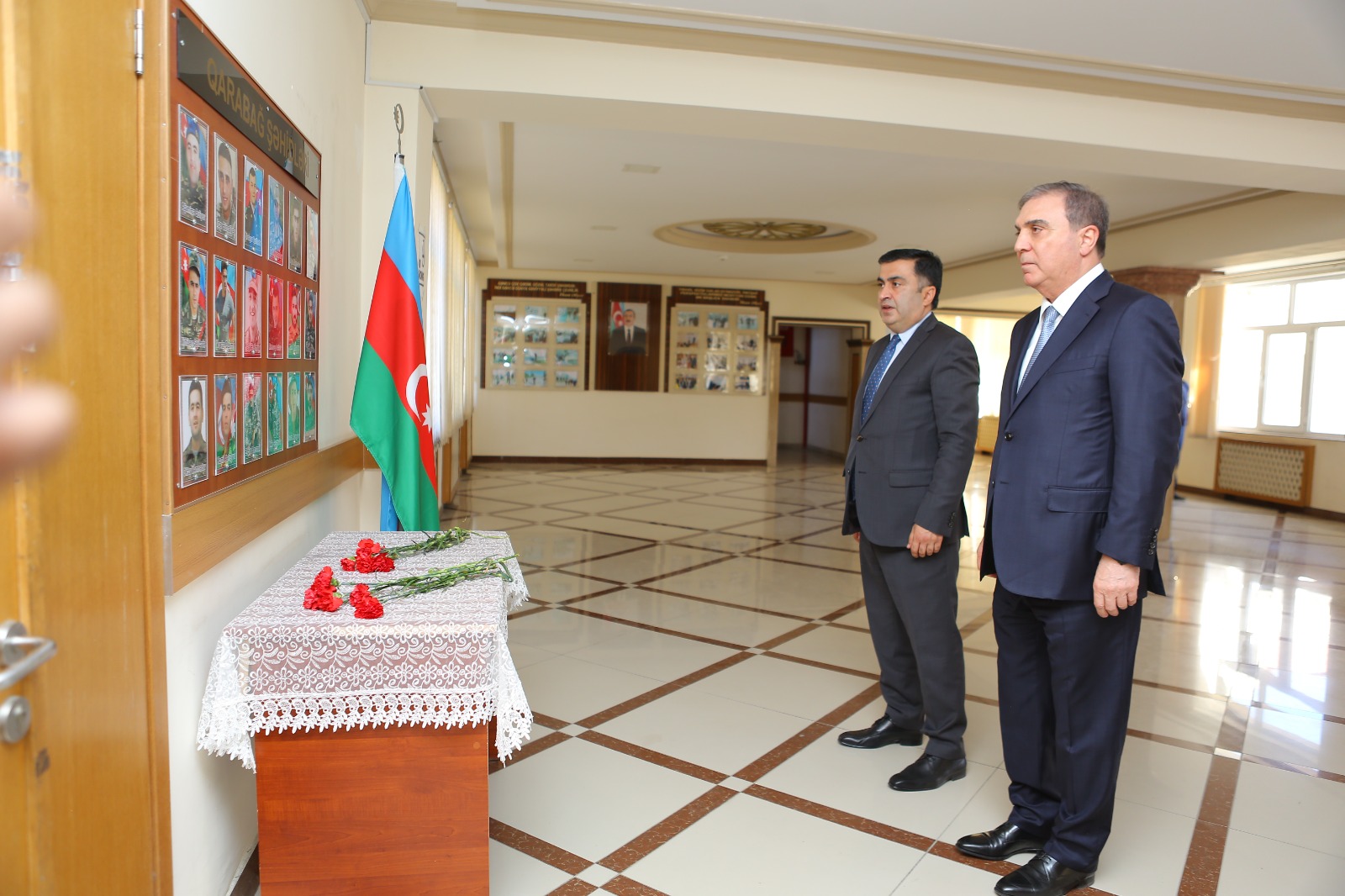 Əvvəlcə rəsmilər təhsil müəssisənin şəhid məzunlarının əziz xatirəsinə həsr olunmuş löhvəni ziyarət edib, önünə tər çiçəklər düzüblər.