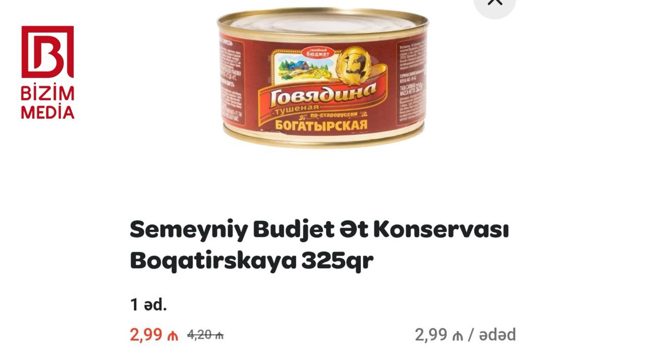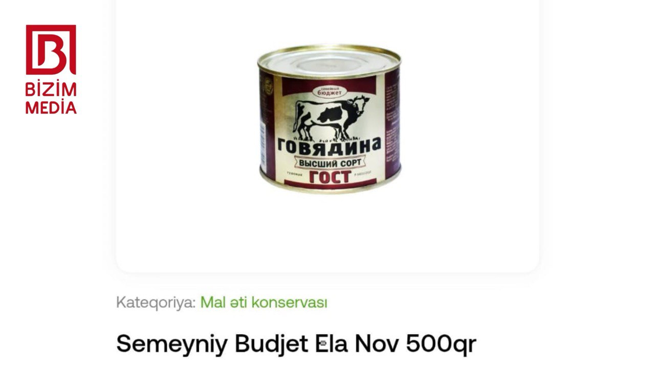 İnternet üzərindən apardığımız araşdırmalar sayəsində öyrəndik ki, ölkəmizdə onlayn ticarət platformalarında “Semeynıy budjet”in konservləşdirilmiş mal əti məhsullarının satışı həyata keçirilir.