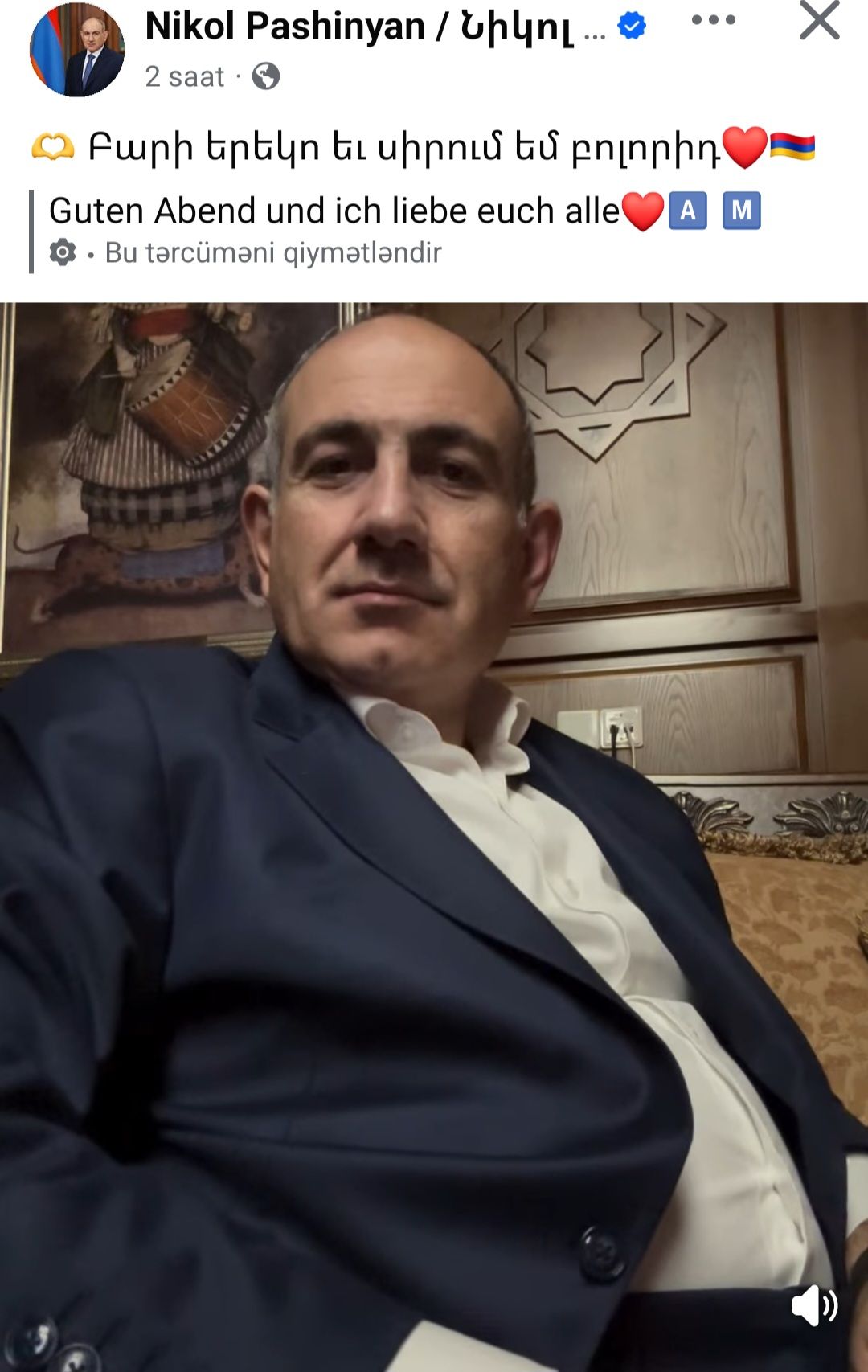 “Axşamınız xeyir, hamınızı sevirəm”, – deyə Nikol Paşinyan qeyd edib.