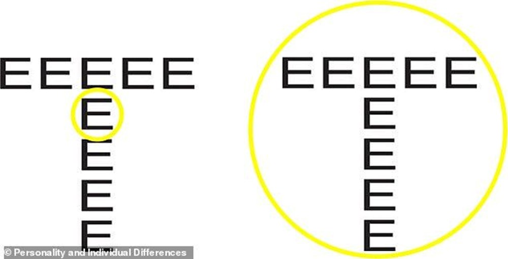 Alimlər könüllülərdən çoxlu kiçik hərflərdən ibarət böyük hərflərə baxmağı xahiş edib və onlardan hansına ilk diqqət yetirdiklərini soruşublar. Antisosial davranışda yüksək bal toplayan insanlar diqqətlərini cəmləməkdə çətinlik çəkirdilər. Onlar tez-tez əvvəlcə böyük hərflərə diqqət yetirirdilər, yəni böyük mənzərəni ən yaxşı şəkildə görə bilirdilər.