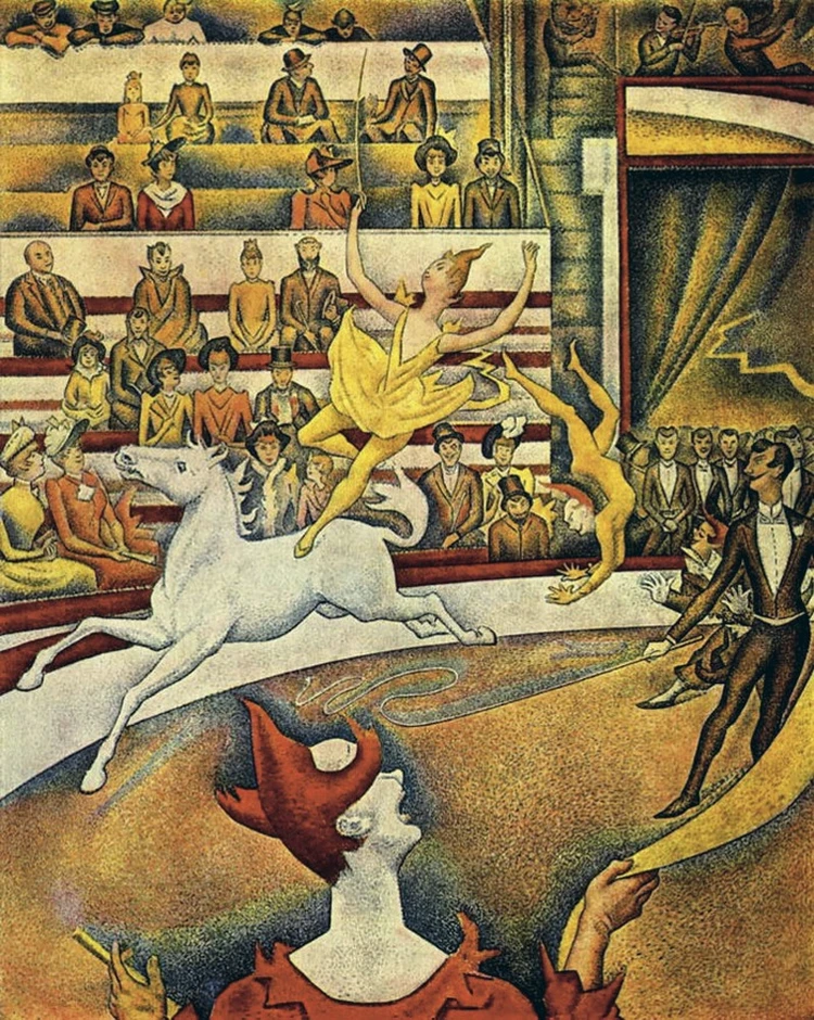 Söra vəfat edəndə cəmi 31 yaşı vardı. Onun son əsəri - “Sirk” yarımçıq qalmışdı. Burada sanki səhnəni klounun gözü ilə görürük: o, həm atlı qızı, həm tərbiyəçini, həm akrobatları yönləndirir. Arxa plandakı tamaşaçılar isə donuq, maraqsız baxışlarla göstərilib.