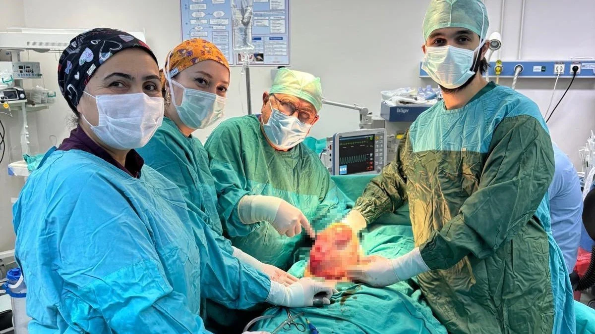 Ginekoloq Prof. Dr. Osman Fadıl Kara və komandası tərəfindən aparılan uğurlu əməliyyatda qadının qarnından 6 kiloqramlıq kütlə çıxarılın.