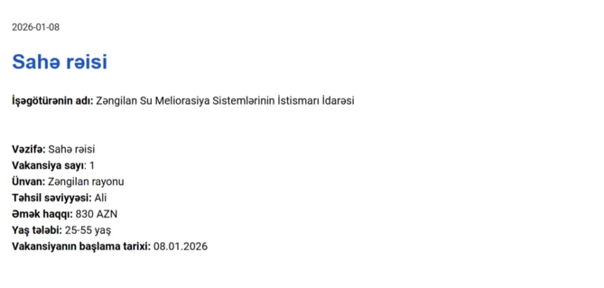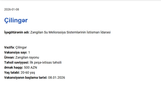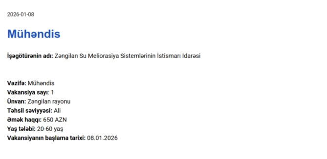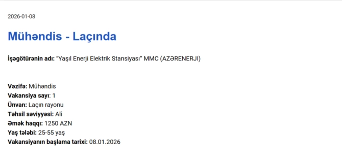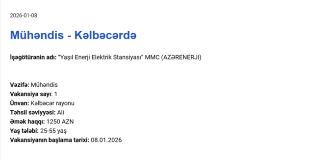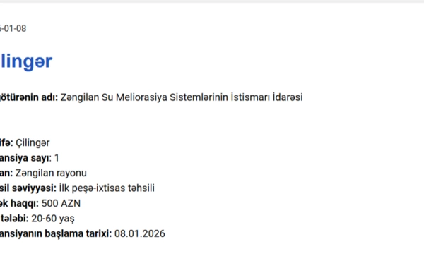 Qarabağda işləmək istəyənlərin NƏZƏRİNƏ! Maaş 1250 AZN dək