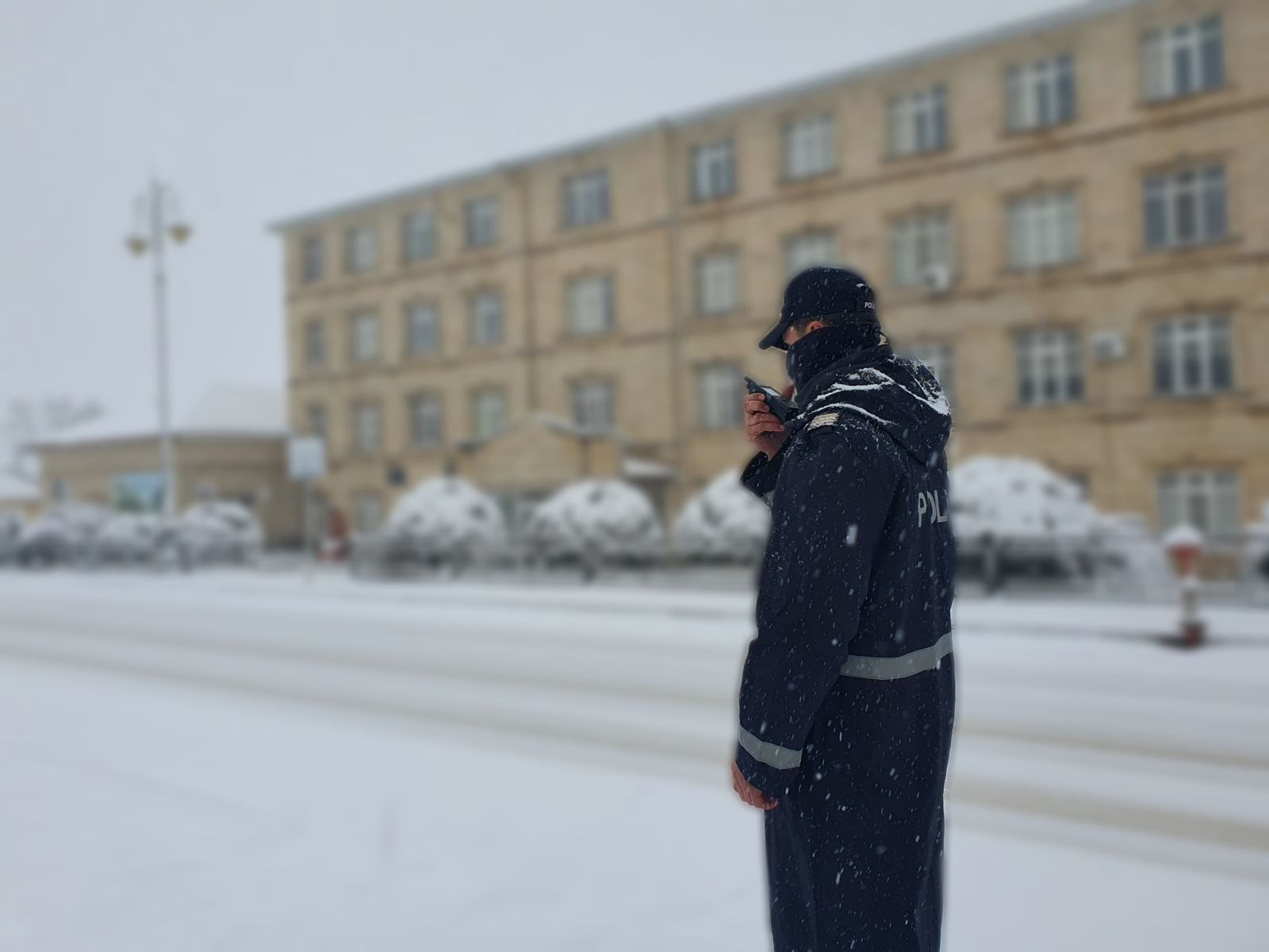 Ölkə ərazisində müşahidə olunan qarlı hava şəraiti ilə əlaqədar olaraq Yeni il bayramı günlərində vətəndaşların istirahət zonalarında və yollarda hərəkət intensivliyinin artması fonunda polis əməkdaşları ölkəboyu gücləndirilmiş rejimdə xidmətini davam etdirir.