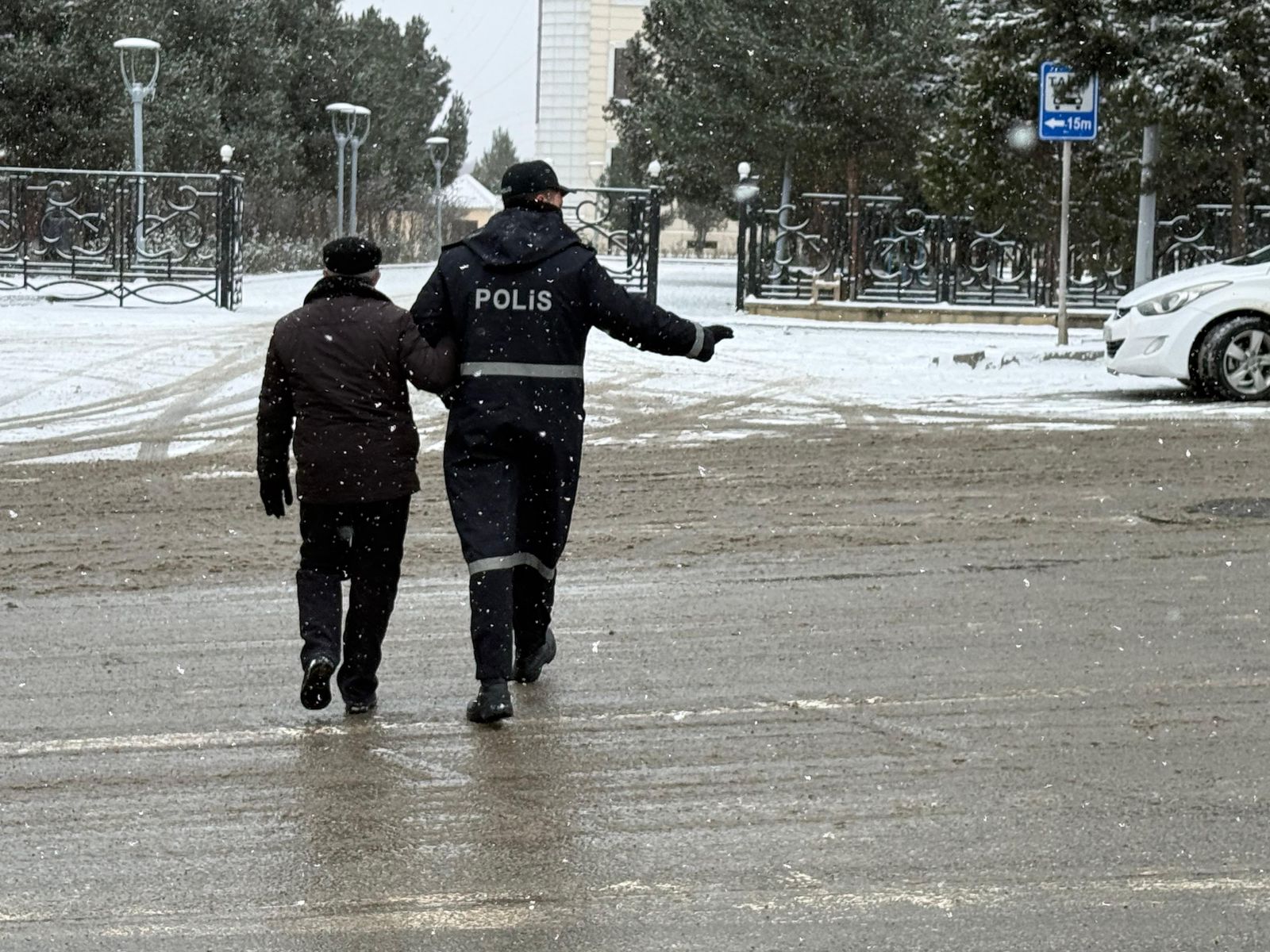 Qarlı havaya görə əlavə polis naryadları cəlb edildi Fotolar