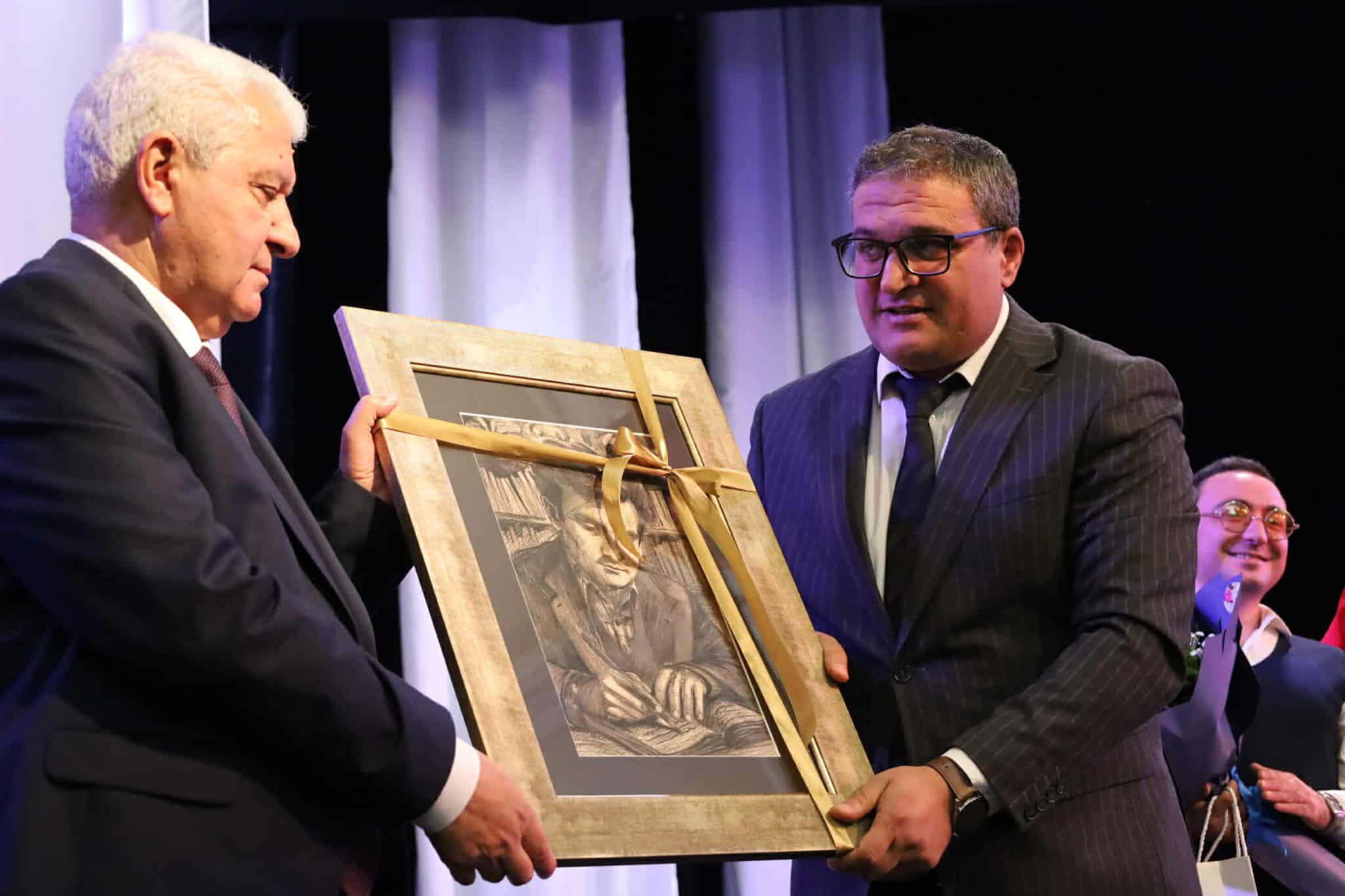 Sonda teatrın kollektivi adından özəl hazırlanmış hədiyyə müəllifə çatdırılması üçün Azərbaycan Dillər Universitetinin akademiki Muxtar Kazımova təqdim edilib.