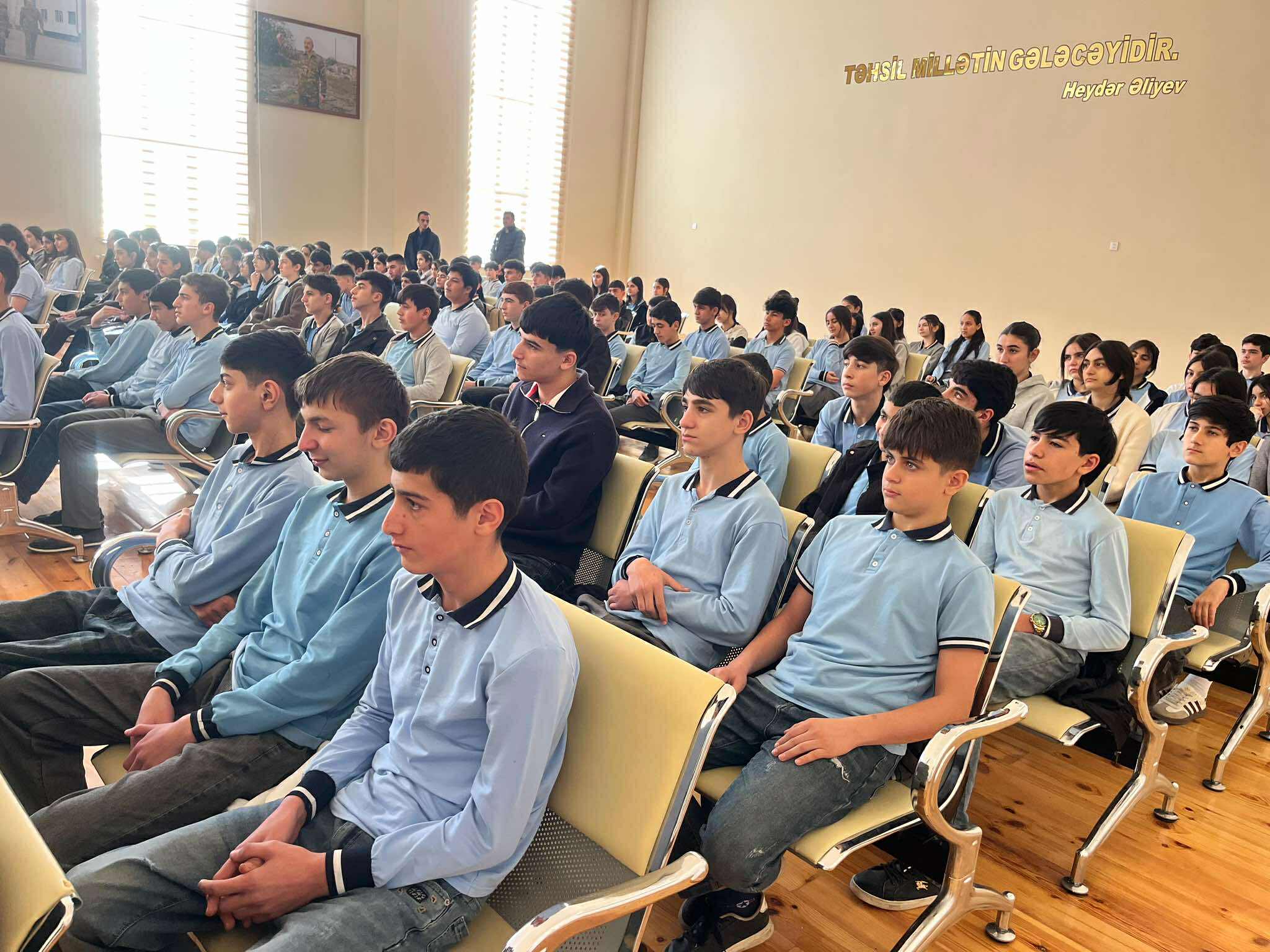 Görüşdə, həmçinin DİN-in Polis Akademiyasından bəhs olunaraq oradakı şərait və üstün imkanlar məktəblilərin diqqətinə çatdırılıb.