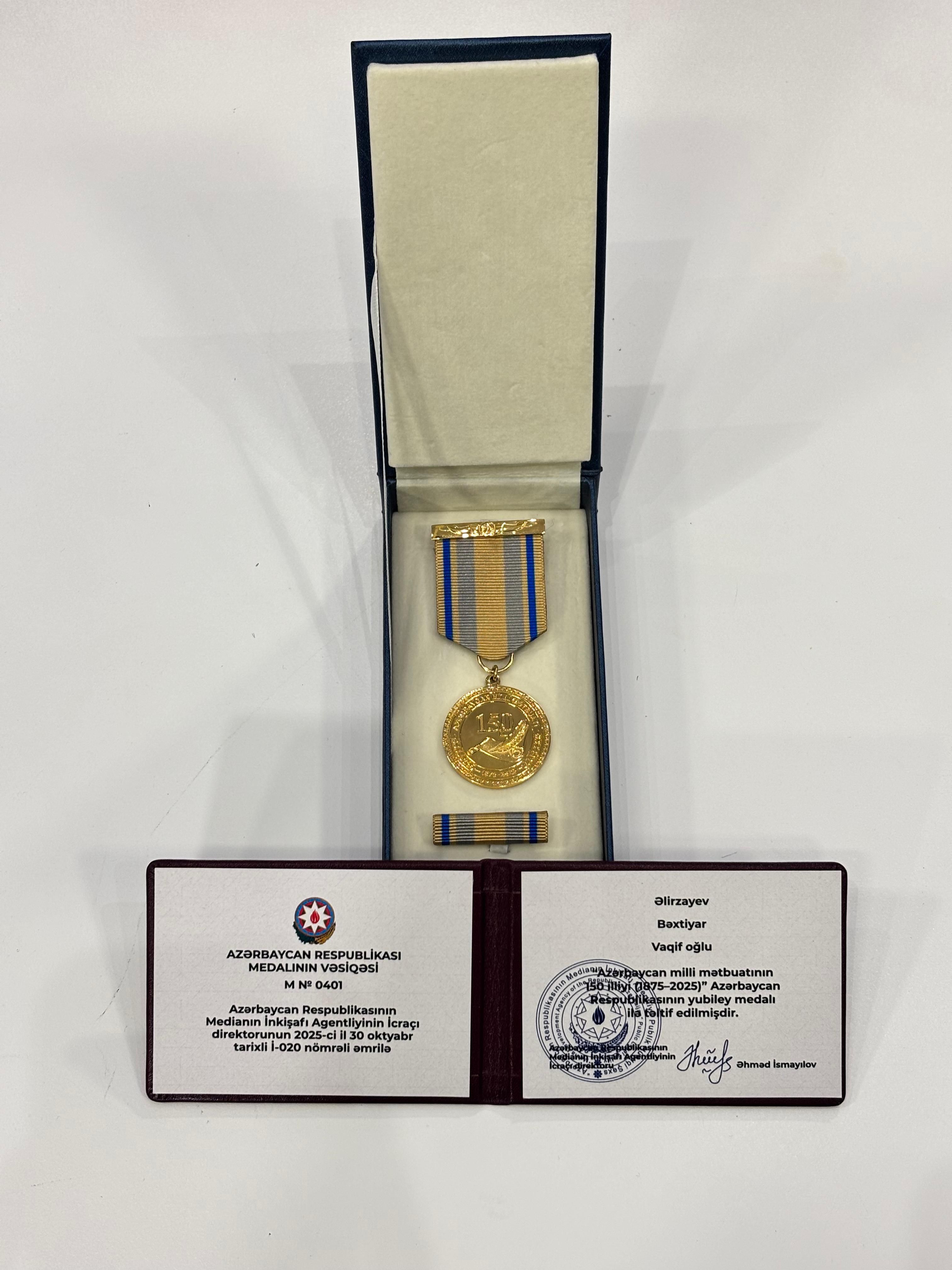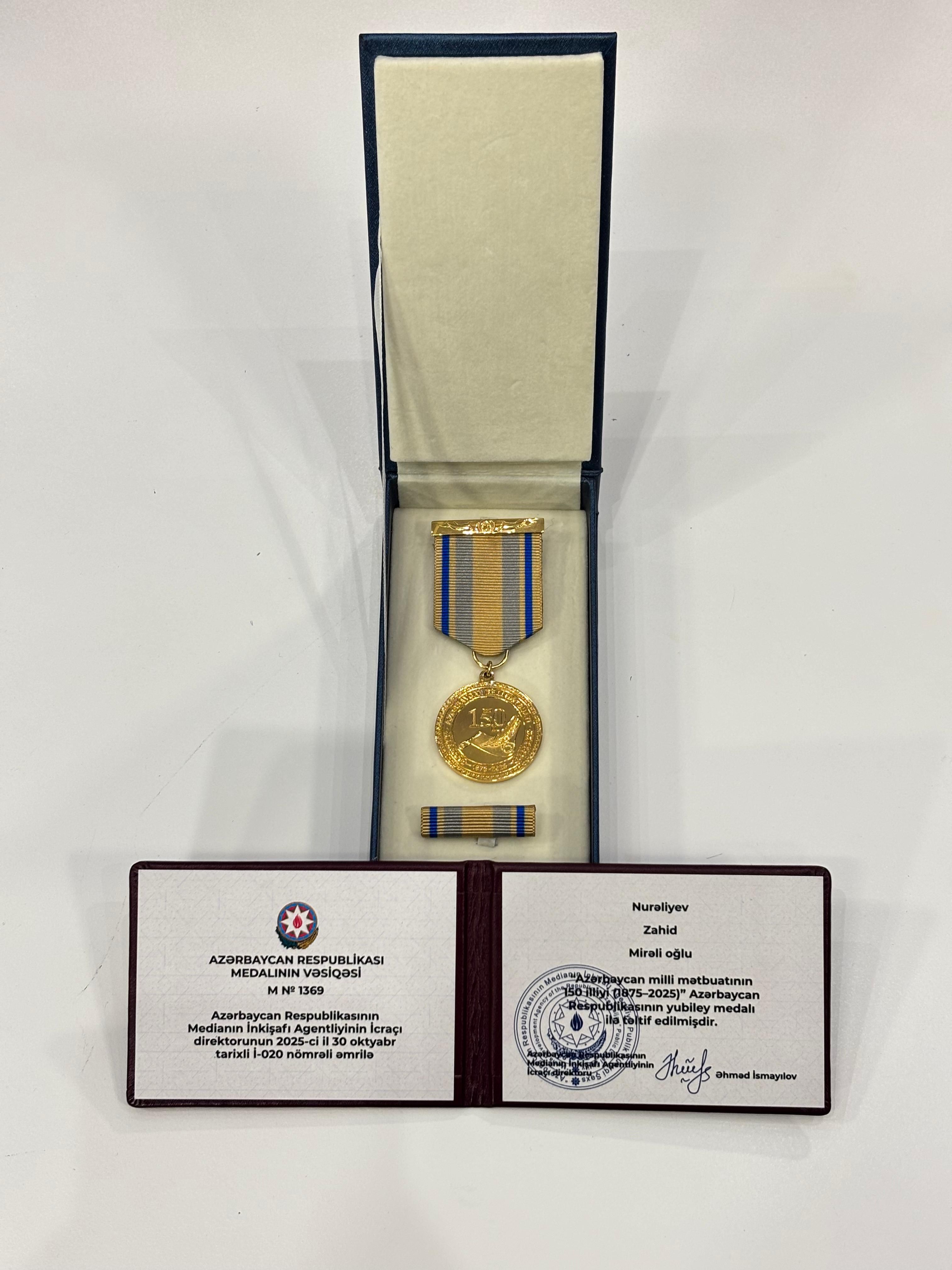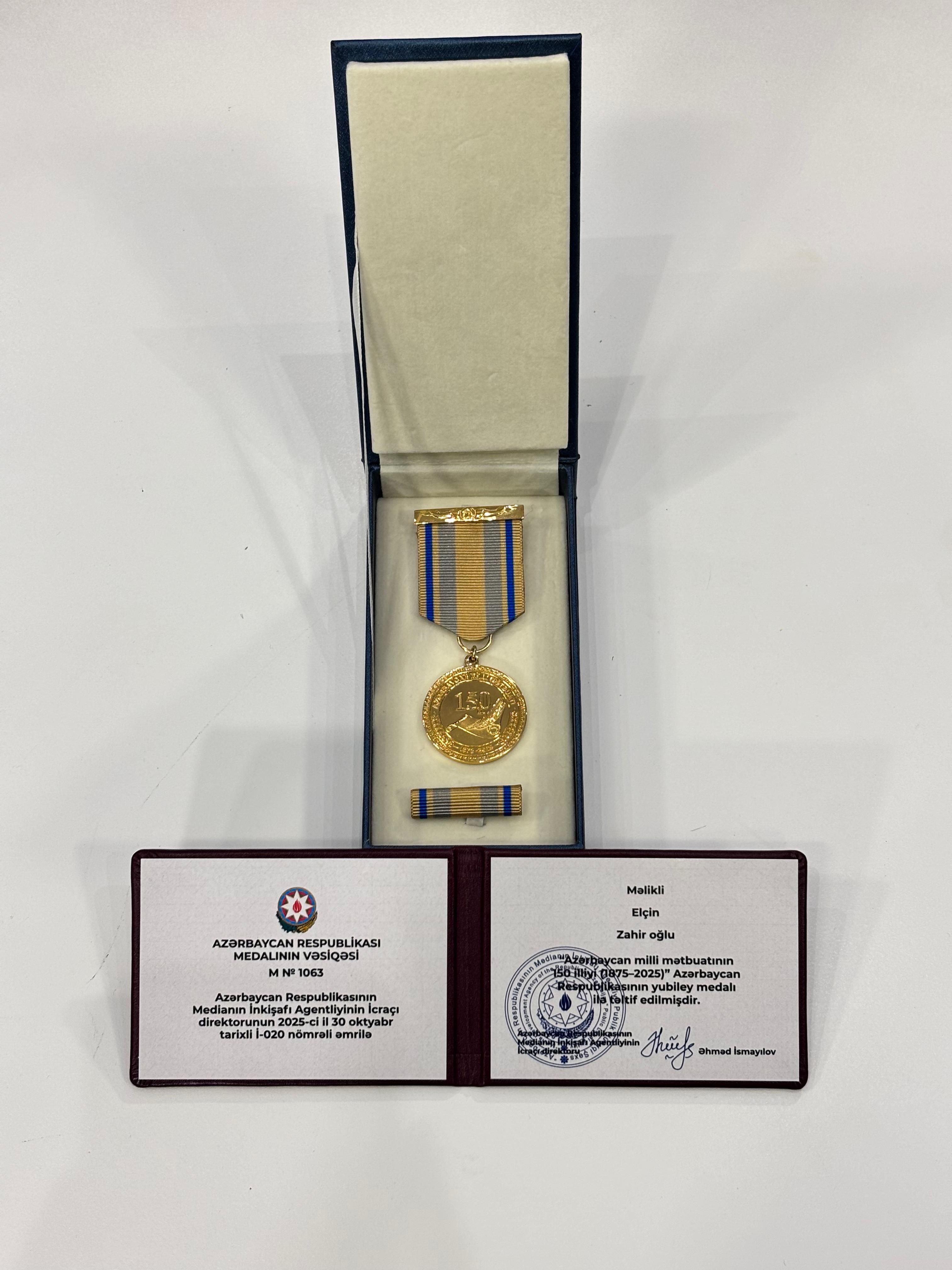 Azərbaycan milli mətbuatının yaranmasının 150 illiyi münasibətilə "Bakupost"un 3 əməkdaşı - Elçin Zahiroğlu (Məlikli), Zahid Nurəliyev və Bəxtiyar Əlirzayev “Azərbaycan milli mətbuatının 150 illiyi (1875–2025)” Azərbaycan Respublikasının yubiley medalı ilə təltif edilib.