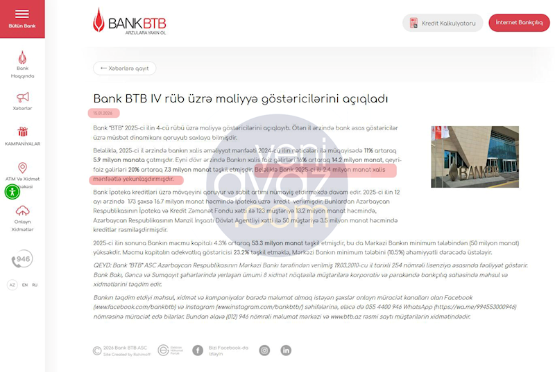Açıqlanan məlumatlardan da göründüyü kimi, “Bank BTB” ASC davamlı olaraq ictimaiyyətə yanlış məlumatlar verir.