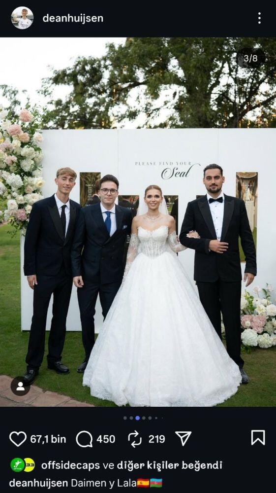"Real"ın ulduz müdafiəçisi Din Huysen toydan paylaşımlar edib və paylaşımın mətnində İspaniya və Azərbaycan bayraqlarını işarələyib.